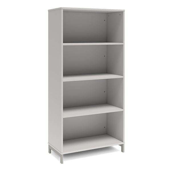 En färdigmonterad bokhylla för ert kontor baserat på valfrihet, utsökt design, ordentlig kvalitet och bra pris. Denna bokhylla passar dig som önskar ett ljust och lätt intryck i dina kontorslokaler, men inte vill ha helt vitt. Förvaringen har delikata handtag i elgalvaniserad aluminium, ett solitt lås med fällbar nyckel. Välj stativ i tre olika färger, som lyfter upp möbeln och möjliggör en ordentlig städning. Hyllorna är färdigmonterade, det enda du måste göra är att fästa stativ och montera handtag.