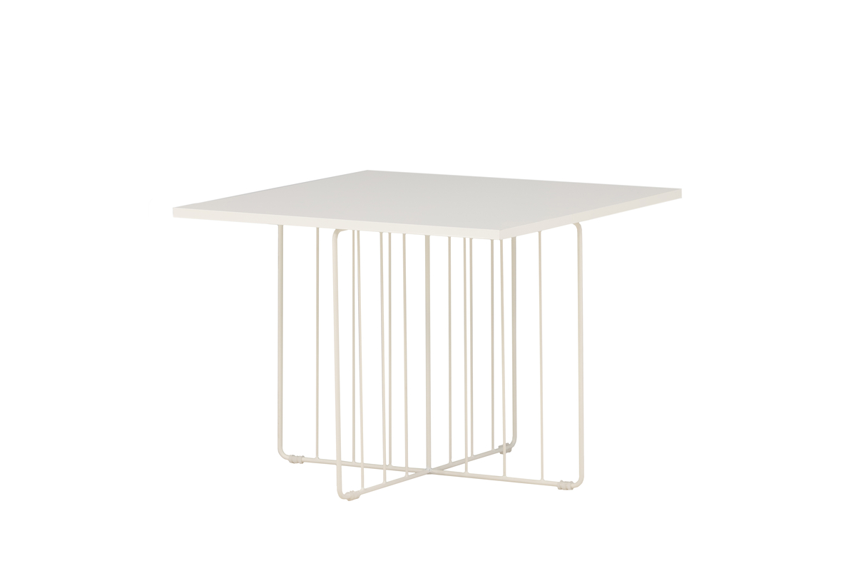 Bordets kvadratiska skiva, tillverkad i vitputsad MDF, ger en ren och elegant känsla. Den neutrala färgen gör det enkelt att matcha med andra inredningsdetaljer, vilket gör soffbordet till en flexibel möbel i varje arbetsmiljö.