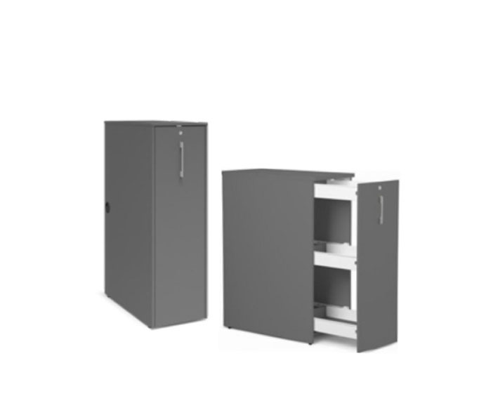 En förvaring i mörkgrått som du har vid sidan om skrivbordet, där du enkelt når dina pärmar och kontorstillbehör. Även perfekt som avskärmning till andra arbetsplatser.