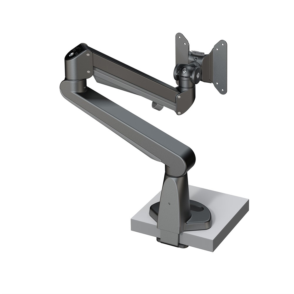 Monitorarmen är tillverkad i högkvalitativ aluminium och finns i tre klassiska färger — svart, vit eller silver — för att harmoniera med olika arbetsmiljöer och inredningsstilar.