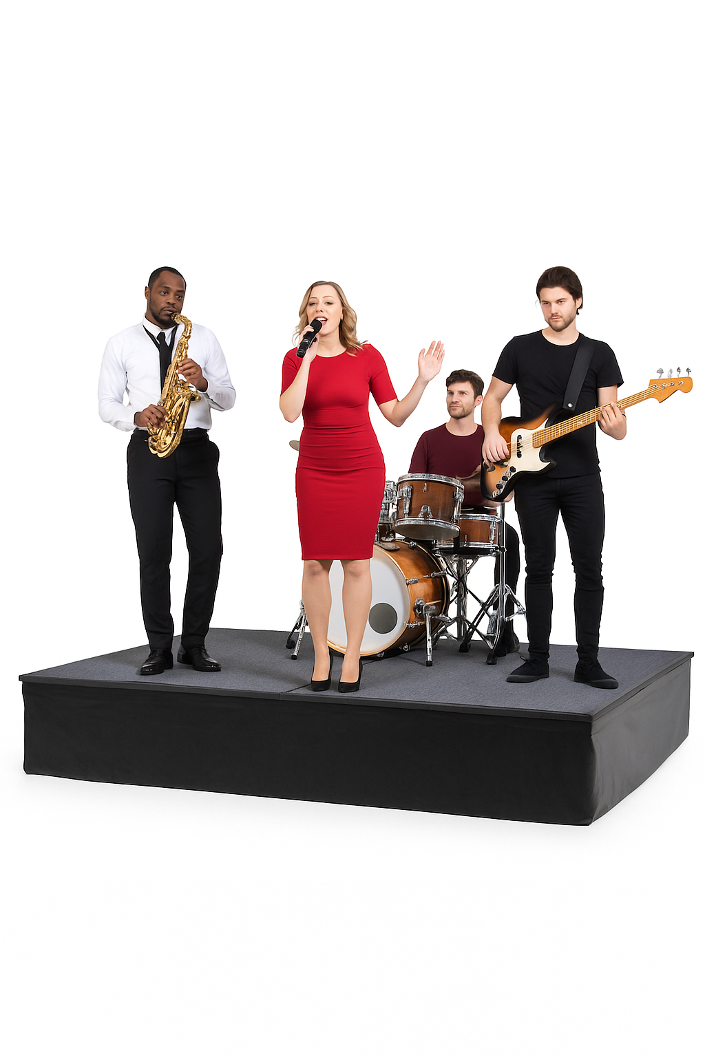 Med sin halkfria matta och stabila ram erbjuder scenen trygghet och säkerhet under uppträdanden, föreläsningar, bufféer, modevisningar, konserter eller skolframträdanden. Scenen är en favorit bland artister, arrangörer och företag tack vare sin kombination av enkel hantering och hög belastningskapacitet.