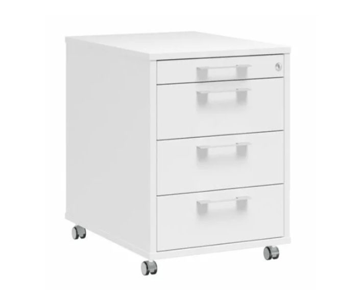 Hurtsen är tillverkad i vit laminat och ingår i kontorsmöbelserien DNA.