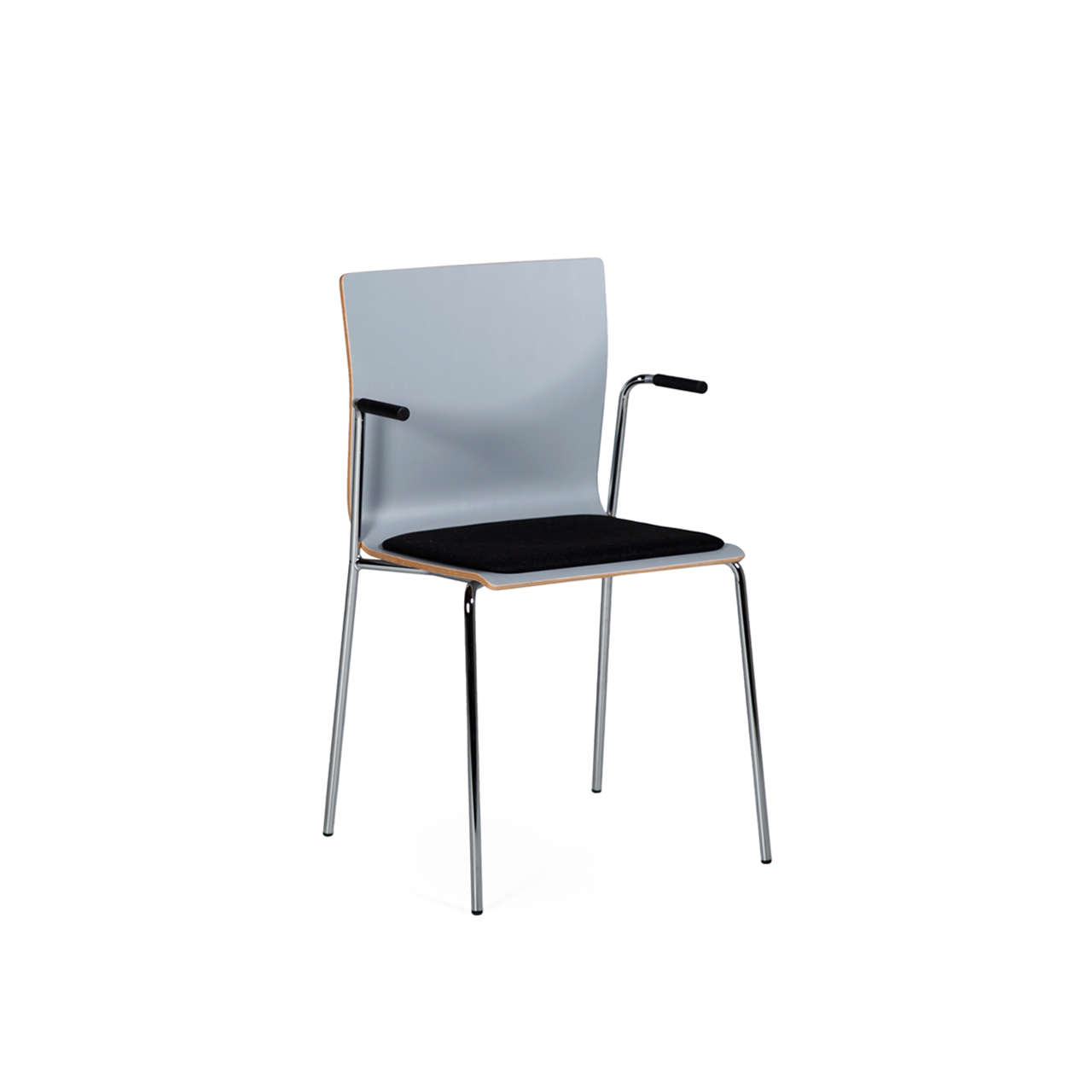 Karmstolen är konstruerad för att kunna hängas på bordsskivan, vilket förenklar städning i lunchrum och restaurangmiljöer. Stolen är både stapelbar och kopplingsbar och kan kompletteras med kopplingsbeslag för möblering i rader.