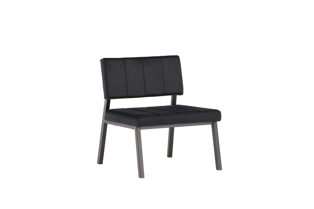 Monett-fåtöljen har en stilren skandinavisk design med lätt utsvängda ben i svart metall. Den skinande svart sammetssitsen ger en sofistikerad och kaxig touch som förhöjer kontorets estetik. Den rundade ryggen i samma material ger både enhetlighet och elegans.