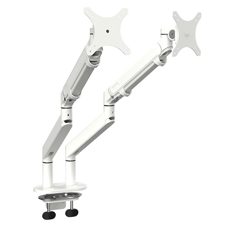 Vita dubbla monitorarmar som kan bära 2 stycken displayskärmar. Monitorarmen passar till skärmar från 14 till 32 tum.
