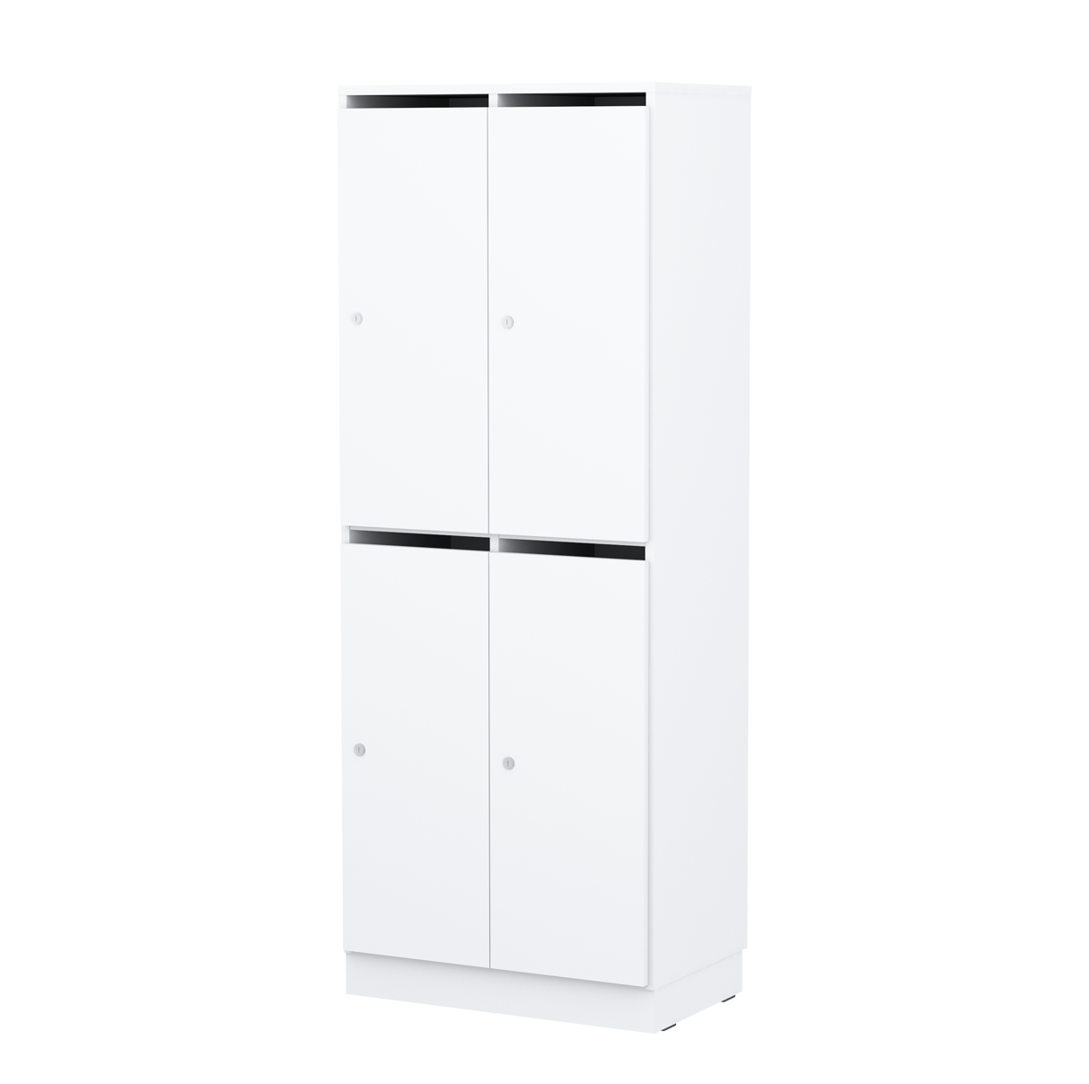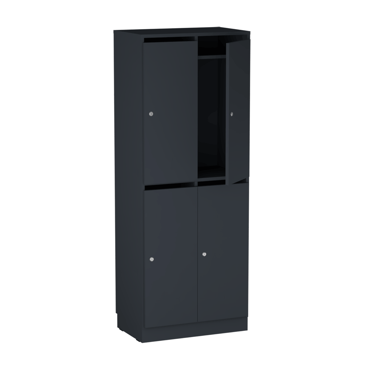 Skåpet är utrustat med fyra rymliga fack samt integrerat postfack, vilket gör det enkelt att hålla ordning på både personliga tillhörigheter och post. Varje fack har individuellt lås för säker och trygg förvaring.