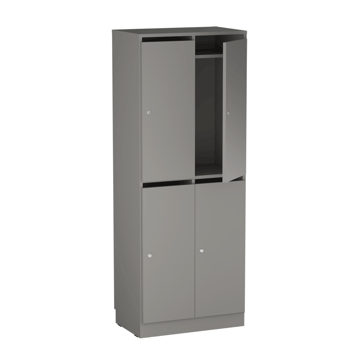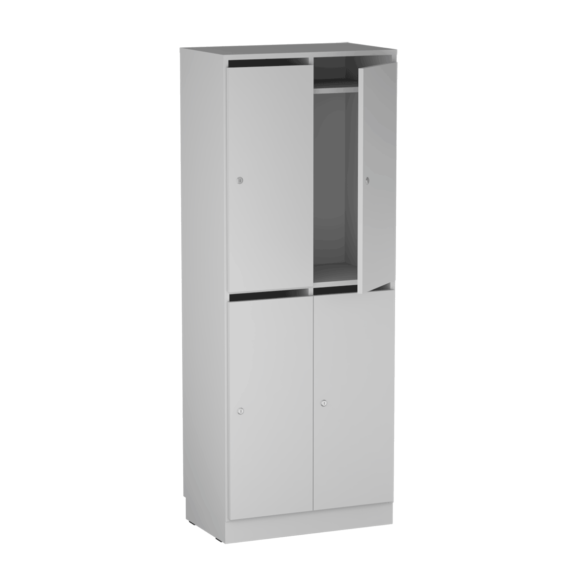Personalskåpen är tillverkade i tåliga material som är enkla att rengöra och anpassade för daglig användning i miljöer med högt slitage.