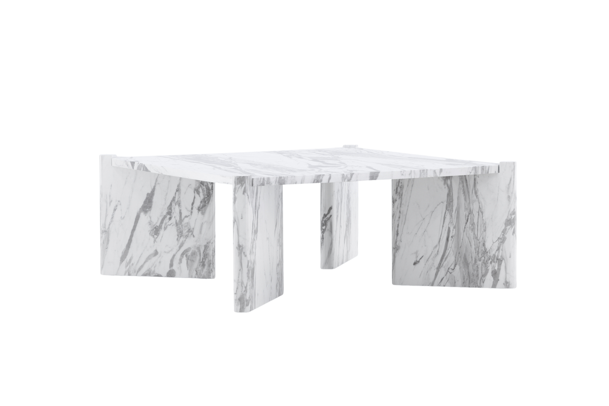 Detta soffbord är tillverkat av hållbart MDF-material och pryds med en vacker vit marmorlook. Den ljusa färgen och den eleganta marmoreringen ger en känsla av lyx och sofistikation, vilket bidrar till en professionell och inbjudande atmosfär på ditt kontor.