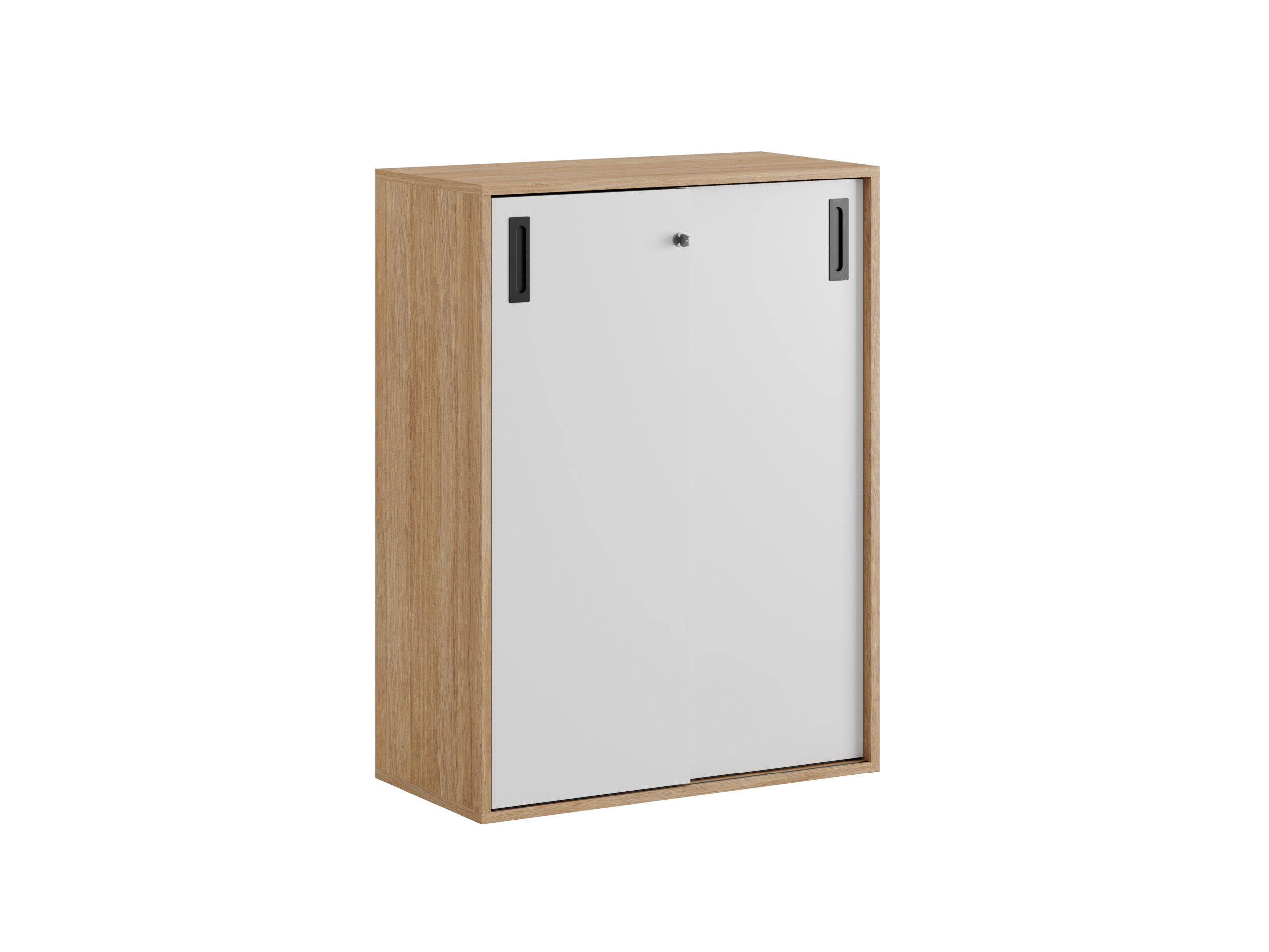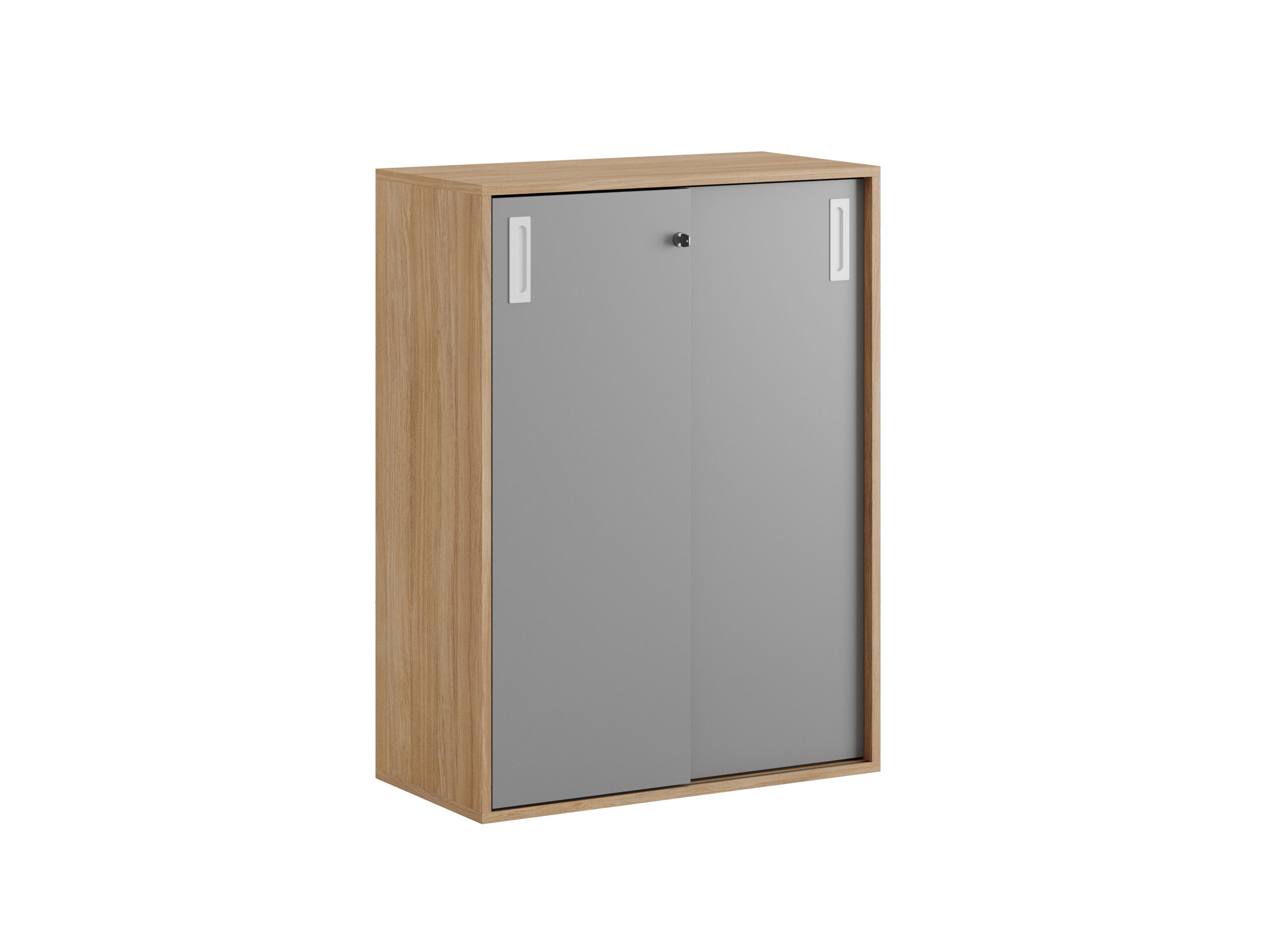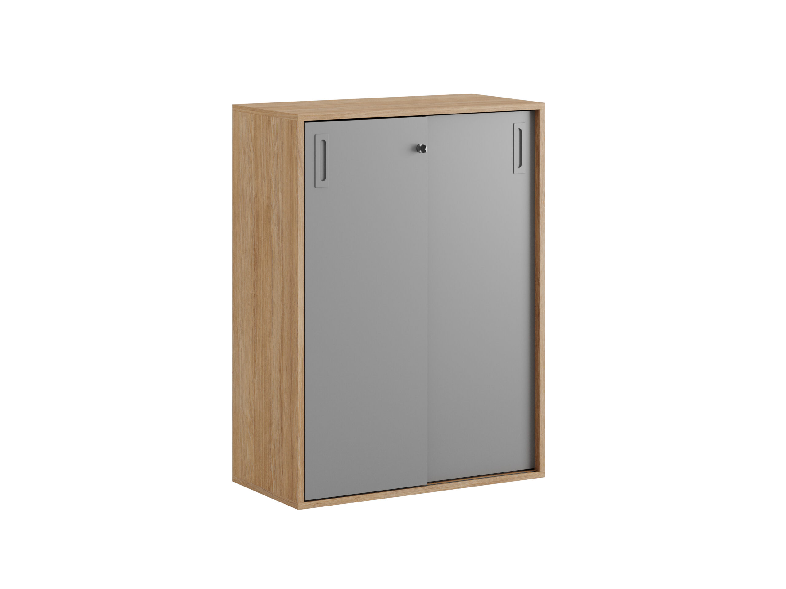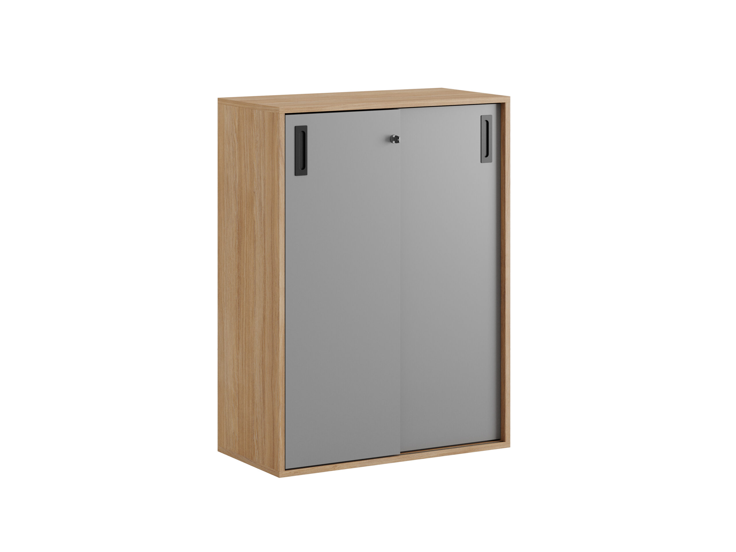 Skjutdörrskåp / dokumentskåp / kontors skåp i ek / urban oak stomme och skjutdörrar i grå, vit eller ek. Mått 80x40x107,5 cm. Småland serien för kunder som gillar nordisk stilren design. Välj mellan handtag i 3 färger. Skåpet rymmer 3 pärmar på höjden. Lås med 2 nycklar ingår.