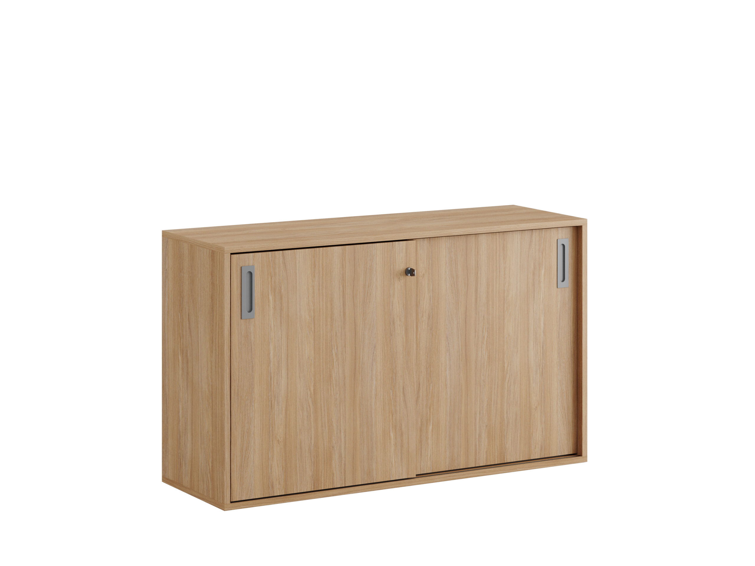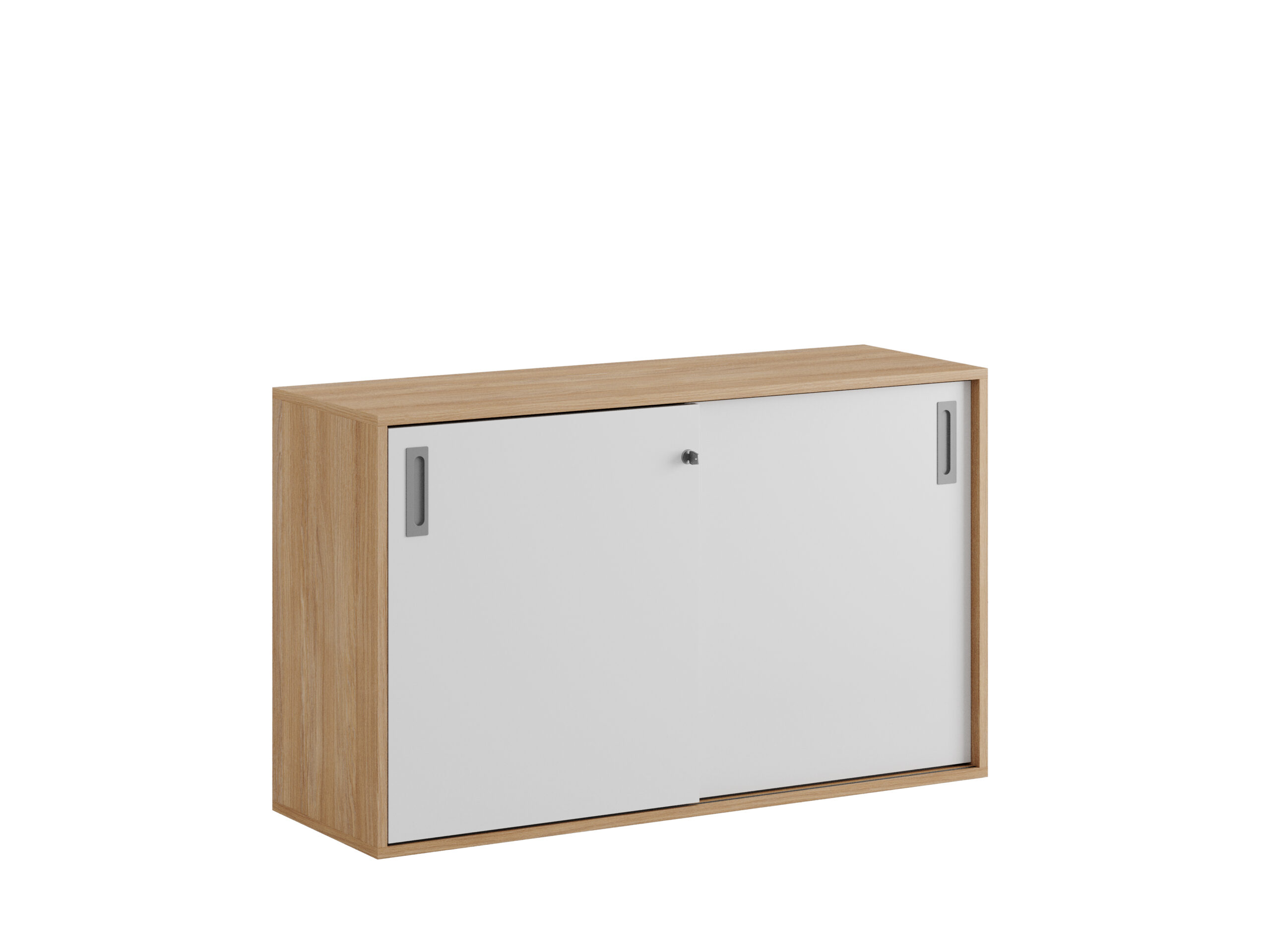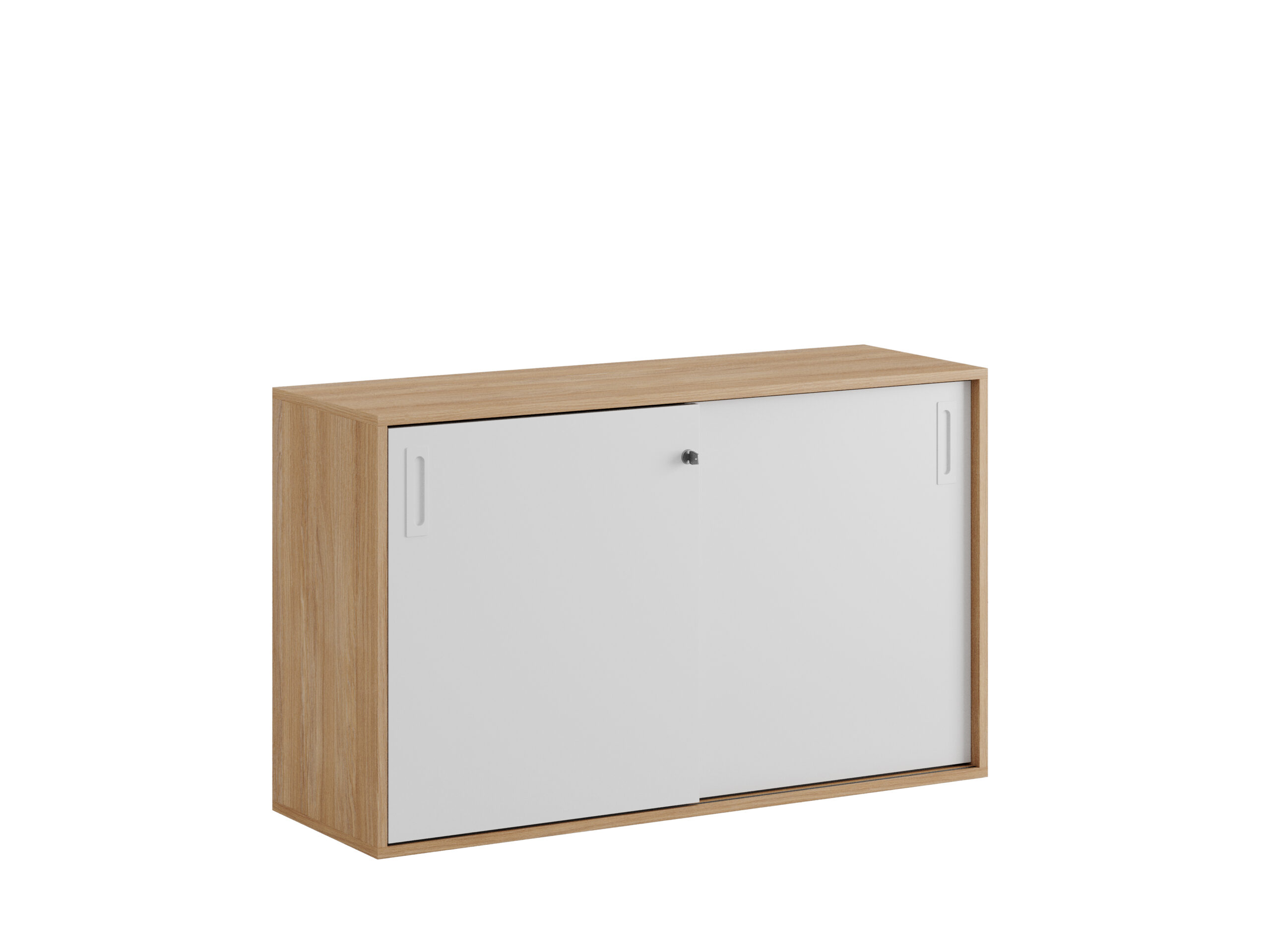 Skjutdörrskåp / dokumentskåp / kontors skåp i ek / urban oak stomme och skjutdörrar i grå, vit eller ek. Mått 120x40x72 cm. Småland serien för kunder som gillar nordisk stilren design. Välj mellan handtag i 3 färger. Skåpet rymmer 2 pärmar på höjden. Lås med 2 nycklar ingår.