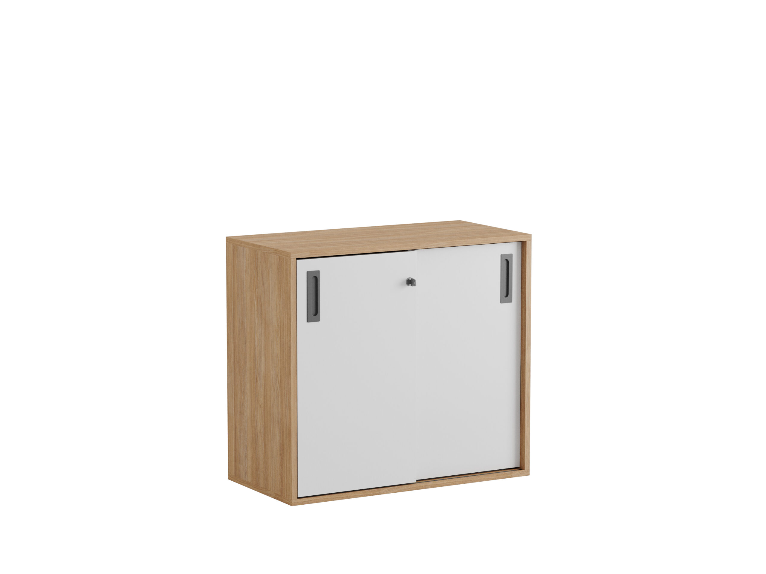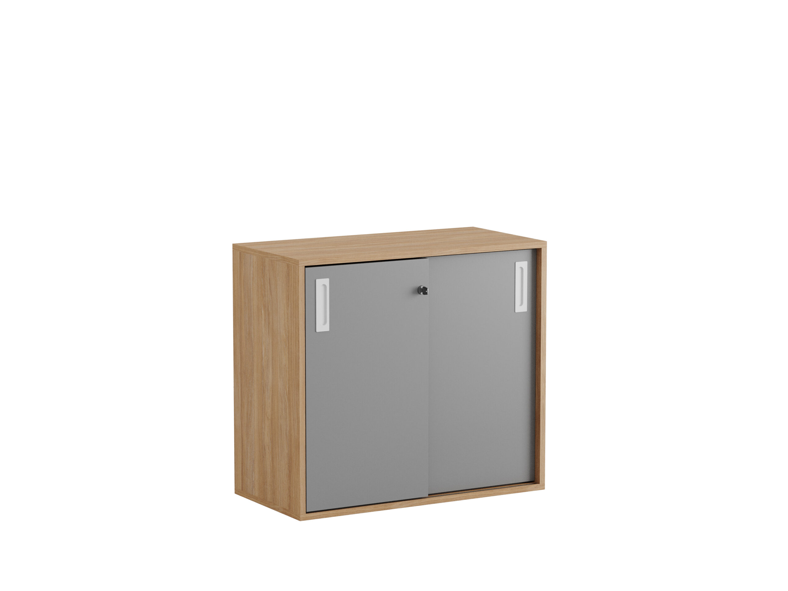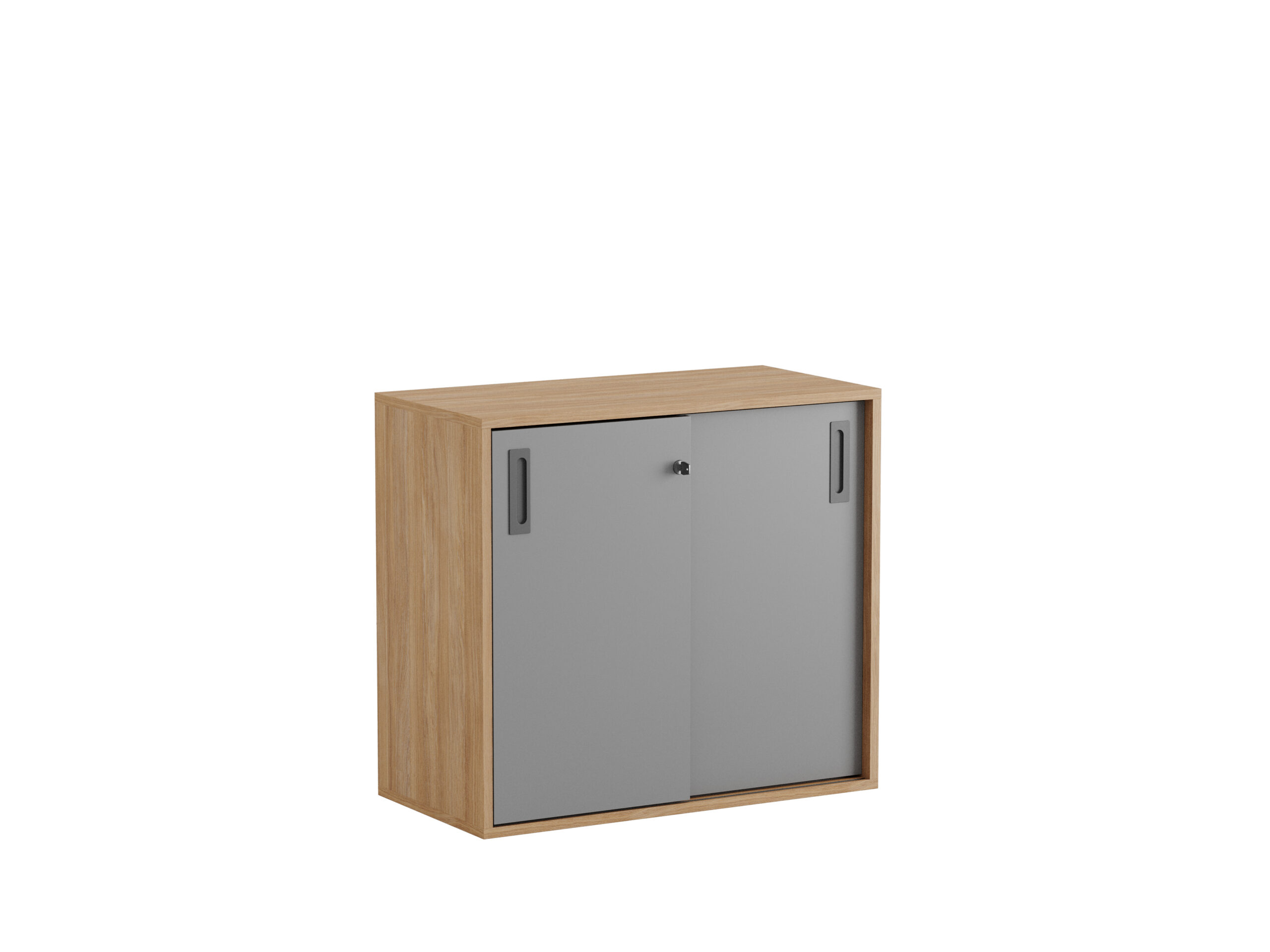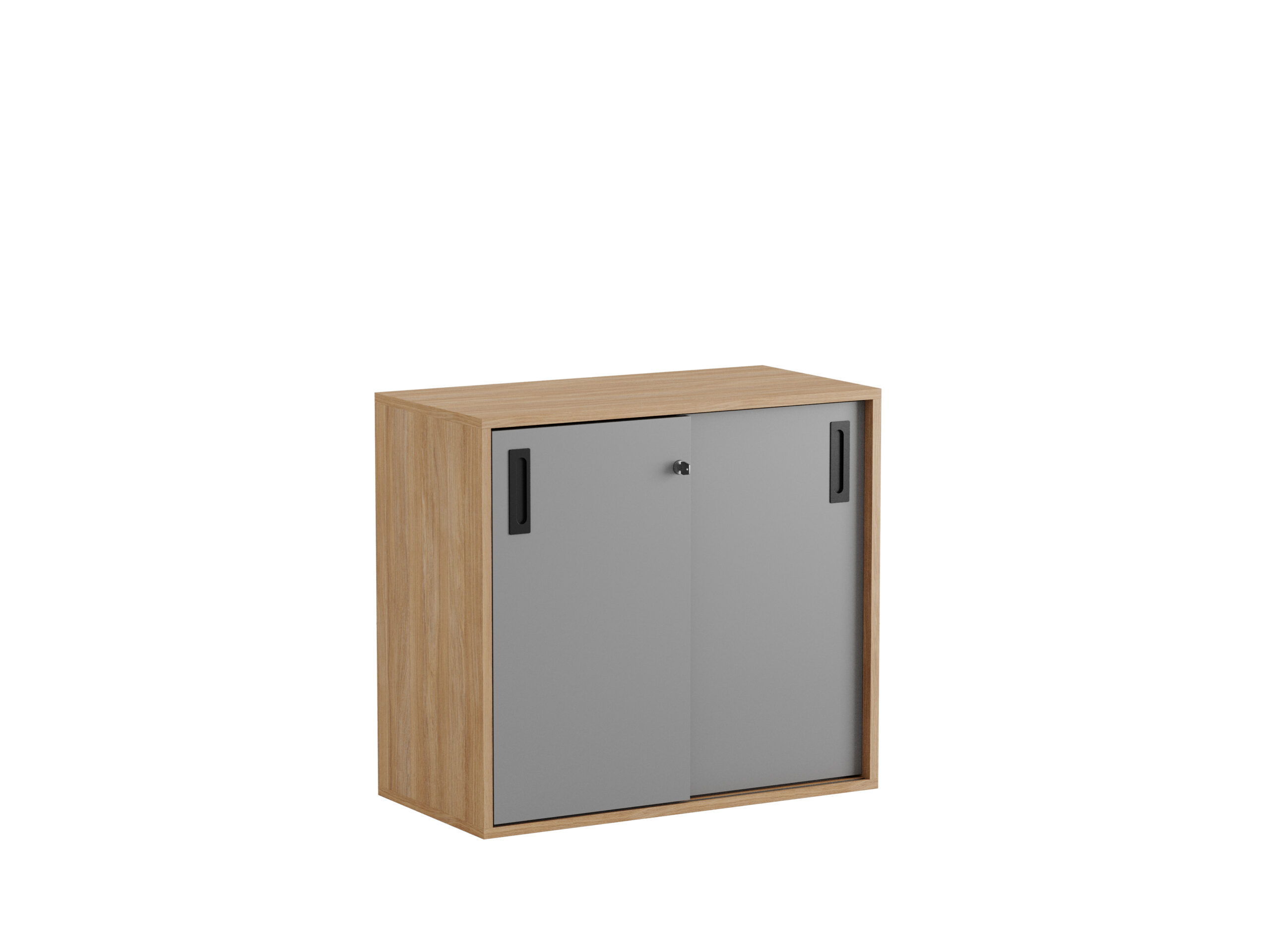 Skjutdörrskåp / dokumentskåp / kontors skåp i urban oak / ek stomme och skjutdörrar i grå, vit eller ek. Mått 80x40x72 cm. Småland serien för kunder som gillar nordisk stilren design. Välj mellan handtag i 3 färger. Skåpet rymmer 2 pärmar på höjden. Lås med 2 nycklar.