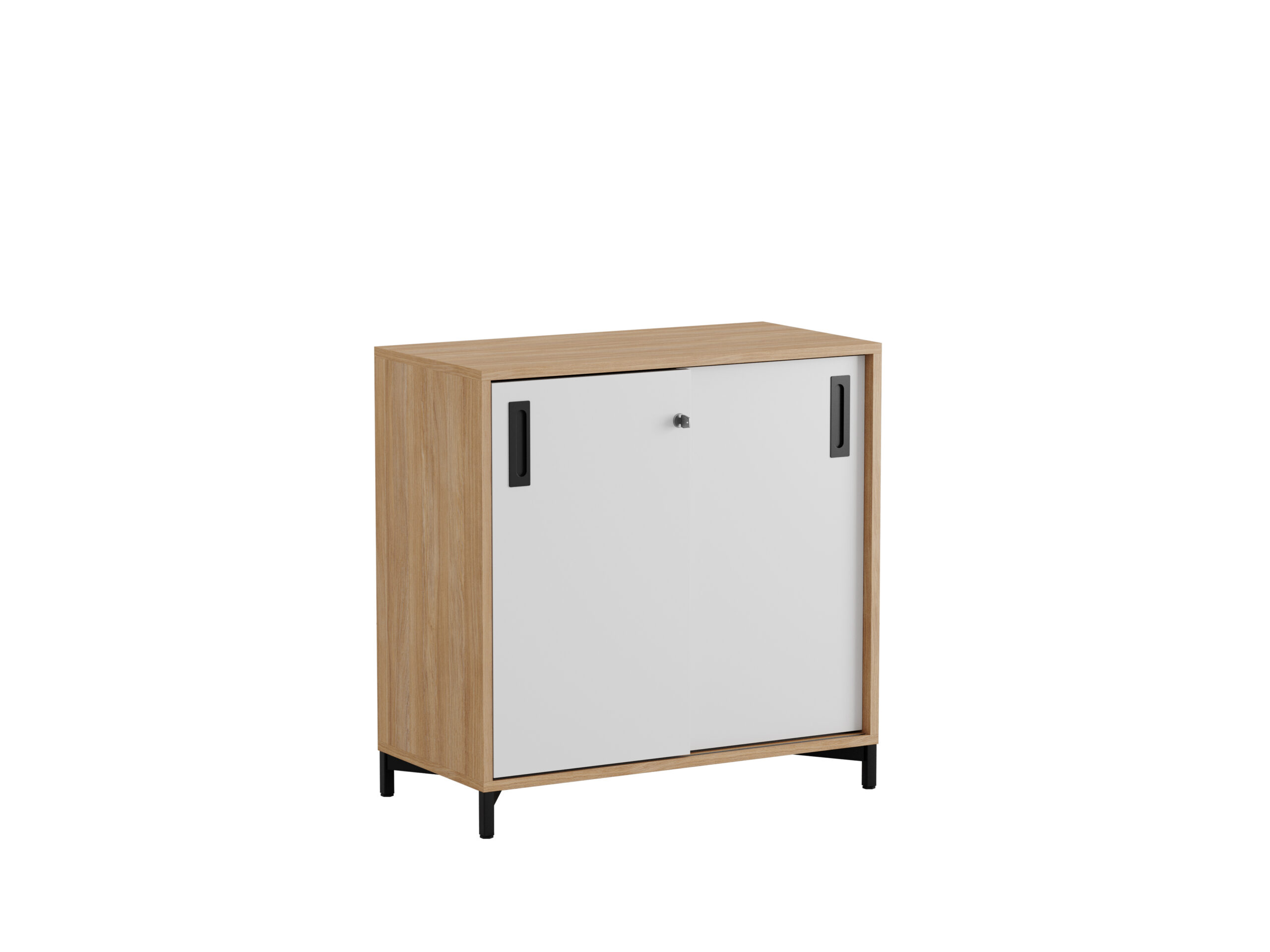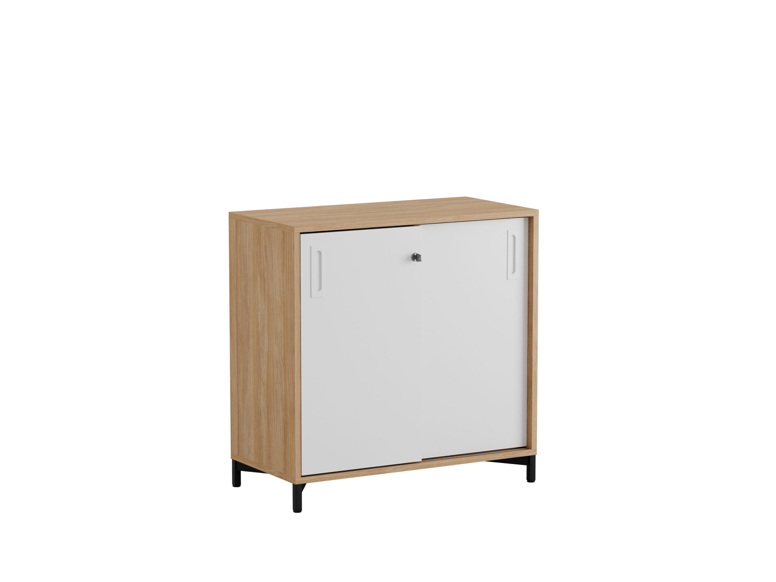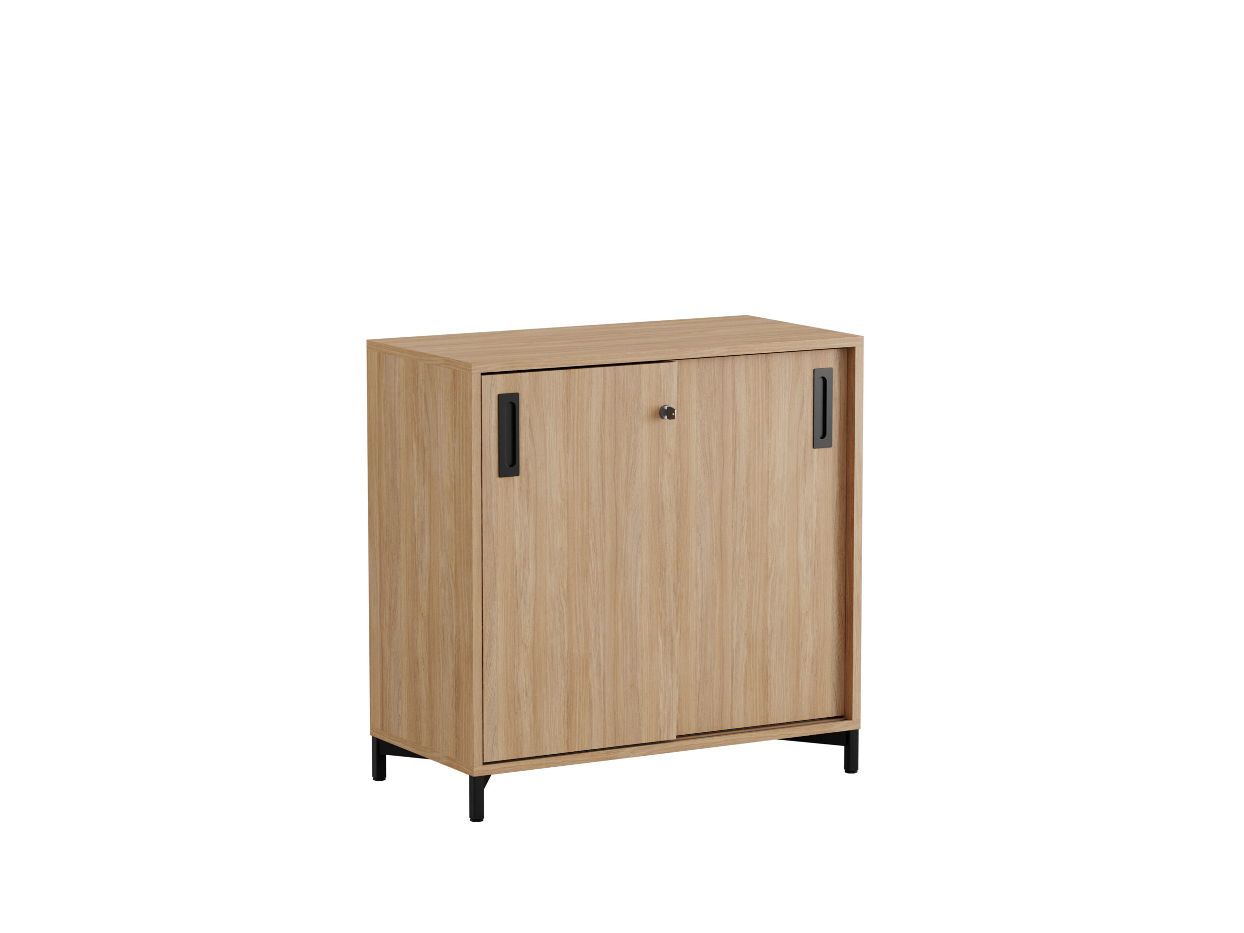 Skapa en välorganiserad och inspirerande arbetsmiljö med Småland Skjutdörrsskåp i urban oak/ek med metallfötter.