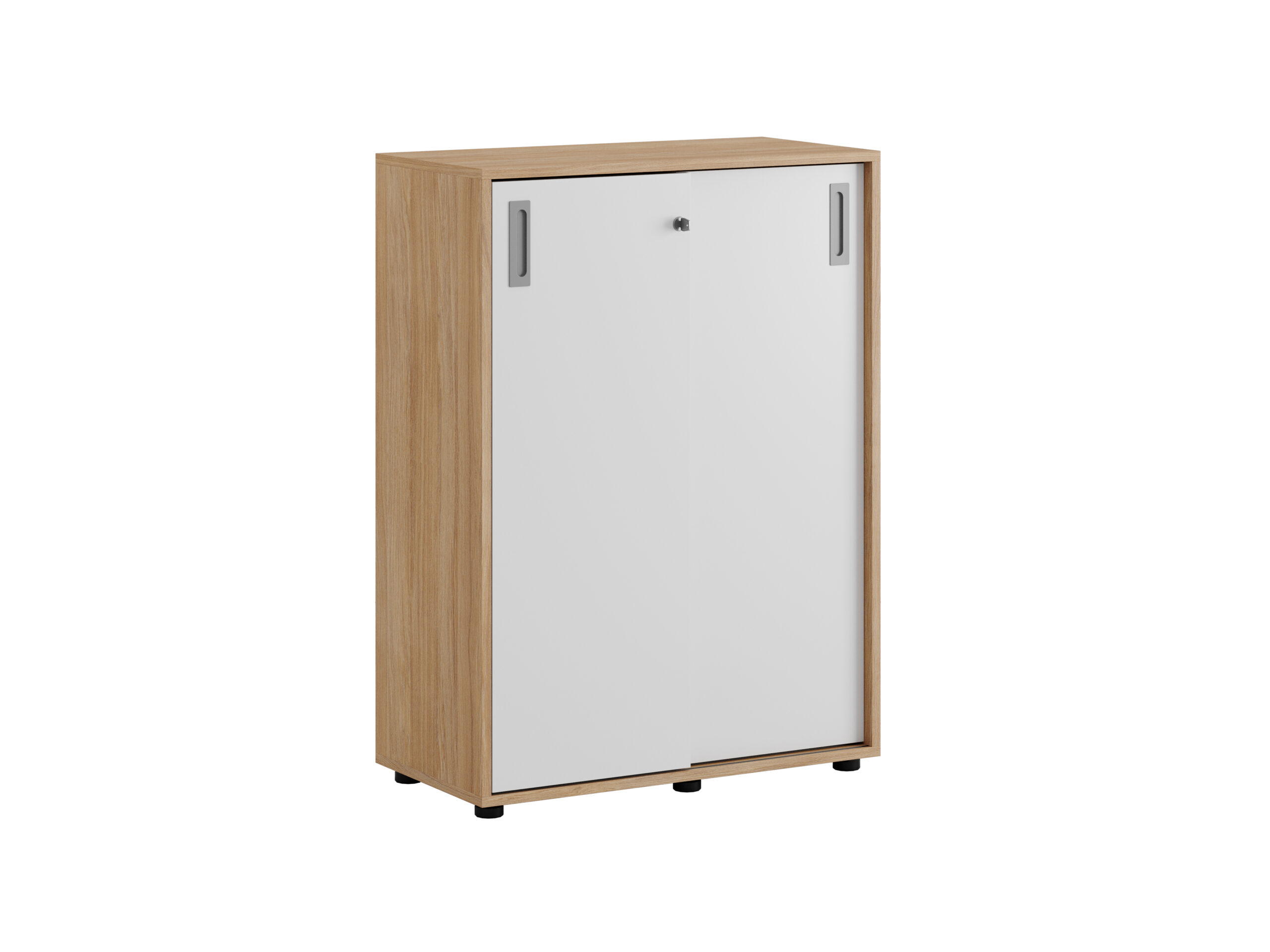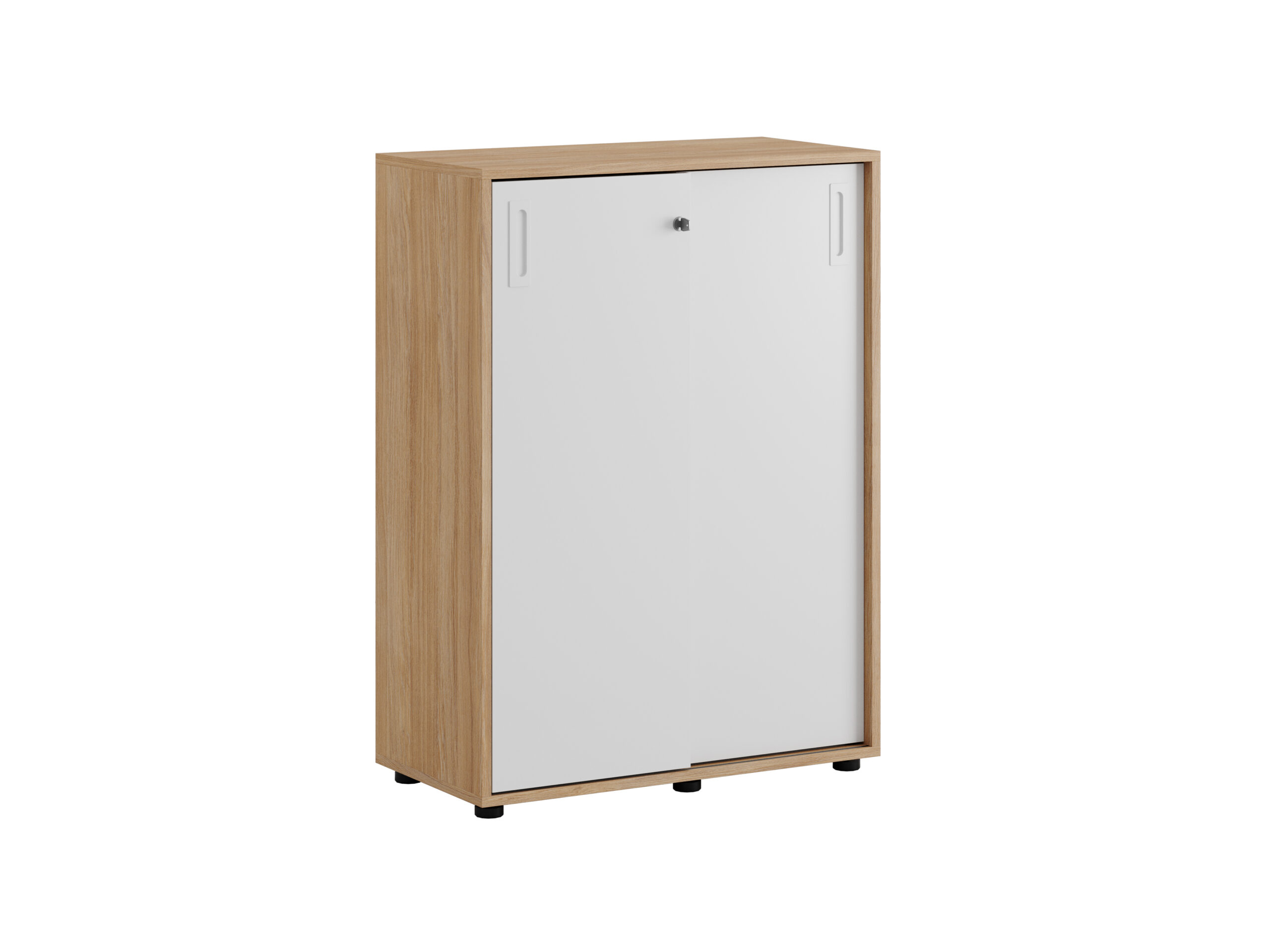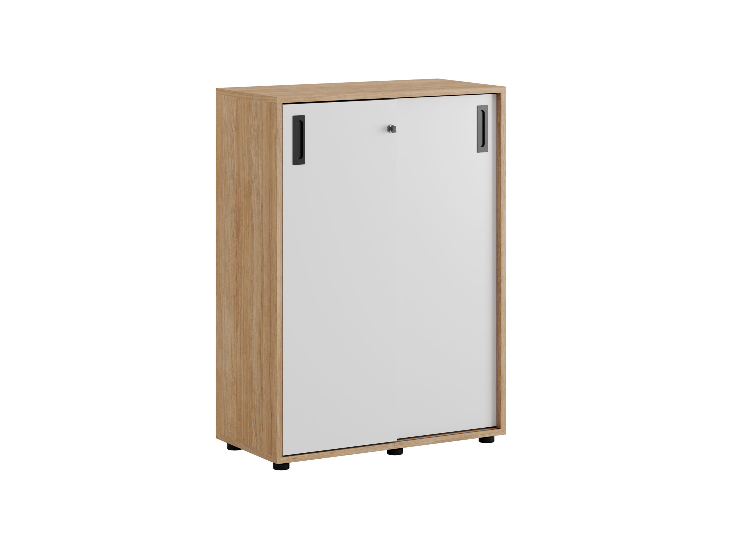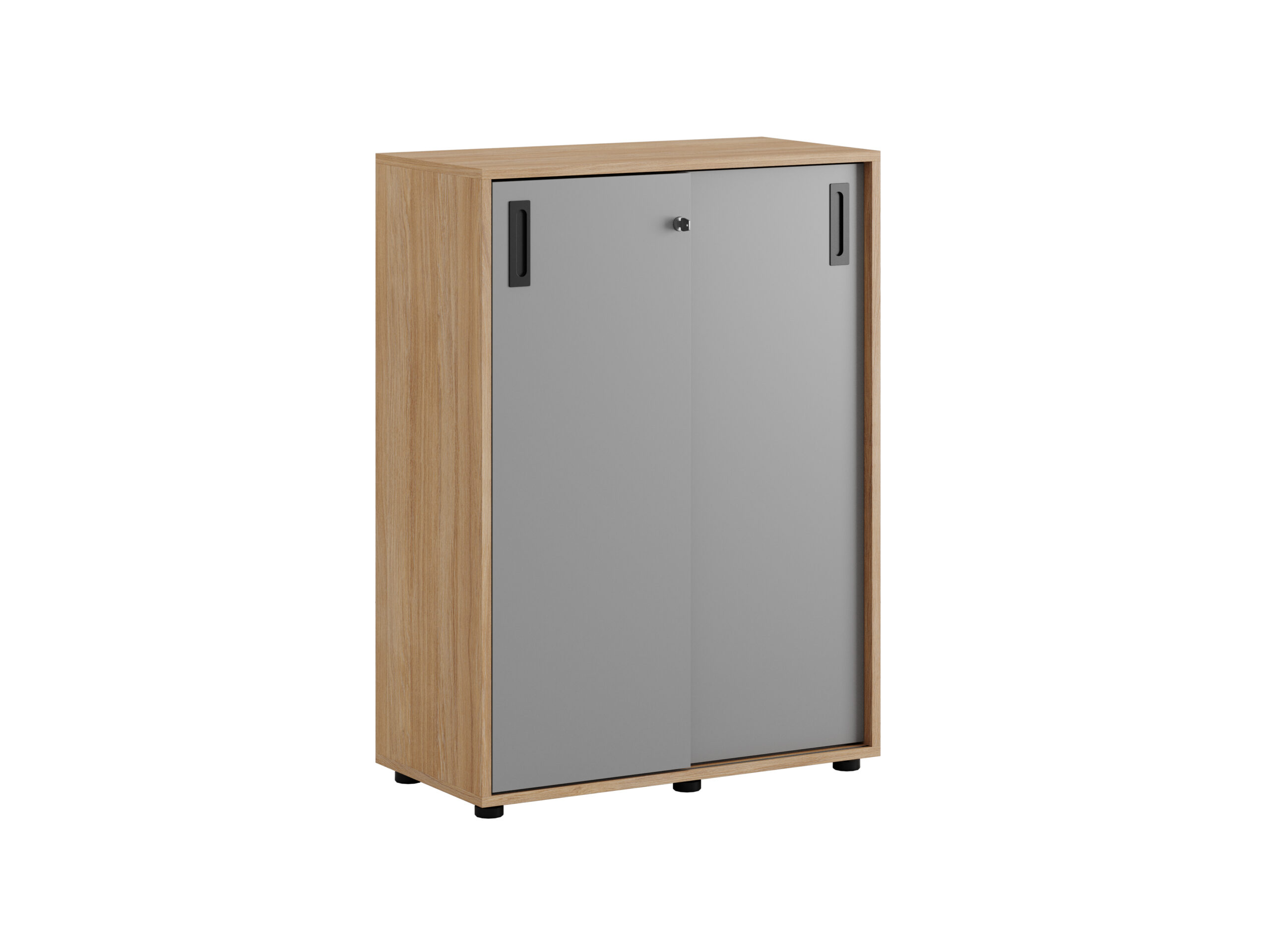 Skjutdörrskåp / dokumentskåp / kontors skåp i ek / urban oak stomme och skjutdörrar i grå, vit eller ek. Med plast fötter. Mått 80x40x109 cm. Småland serien för kunder som gillar nordisk stilren design. Välj mellan handtag i 3 färger. Skåpet rymmer 3 pärmar på höjden. Lås med 2 nycklar ingår.