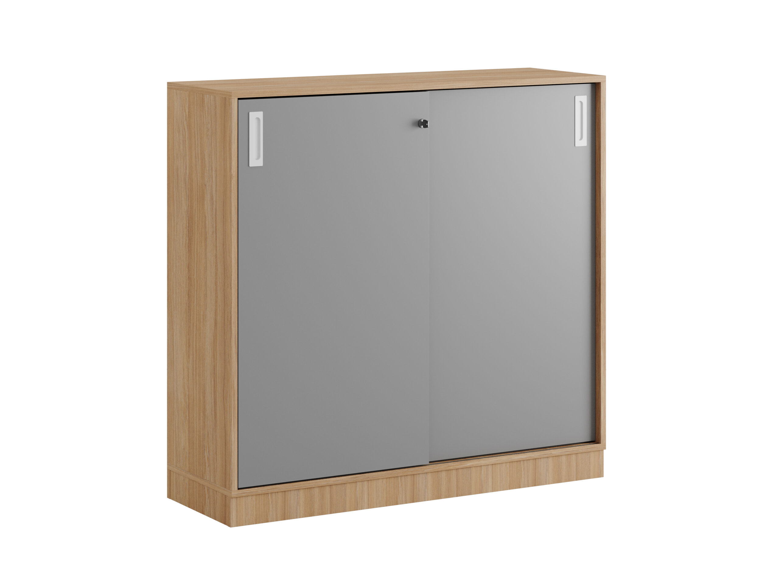 Skjutdörrskåp / dokumentskåp / kontors skåp i ek / urban oak stomme och skjutdörrar i grå, vit eller ek. Med sockel. Mått 120x40x115,5 cm. Småland serien för kunder som gillar nordisk stilren design. Välj mellan handtag i 3 färger. Skåpet rymmer 3 pärmar på höjden. Lås med 2 nycklar ingår.