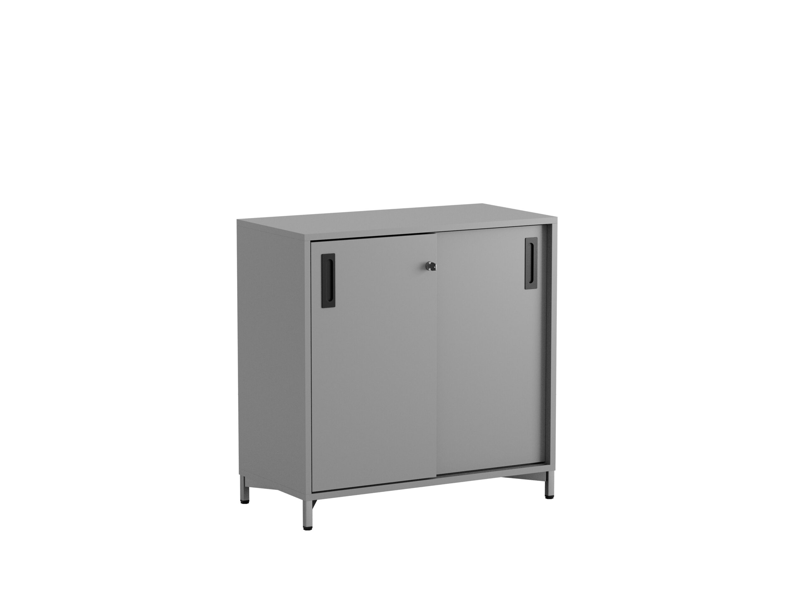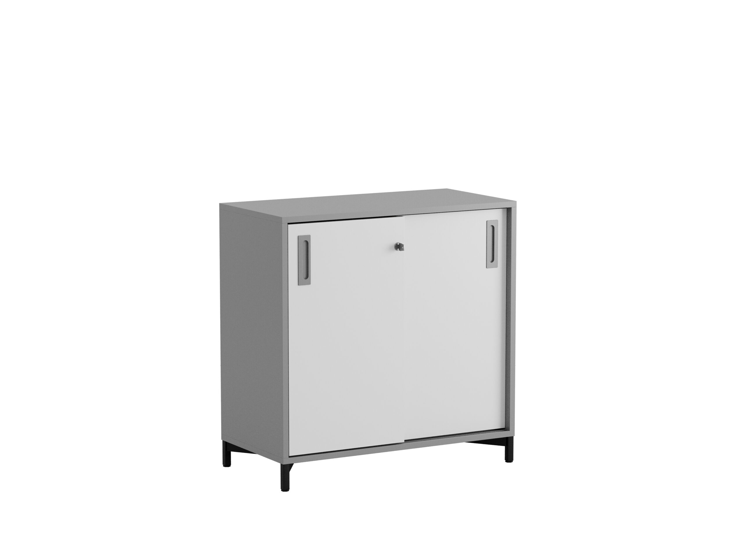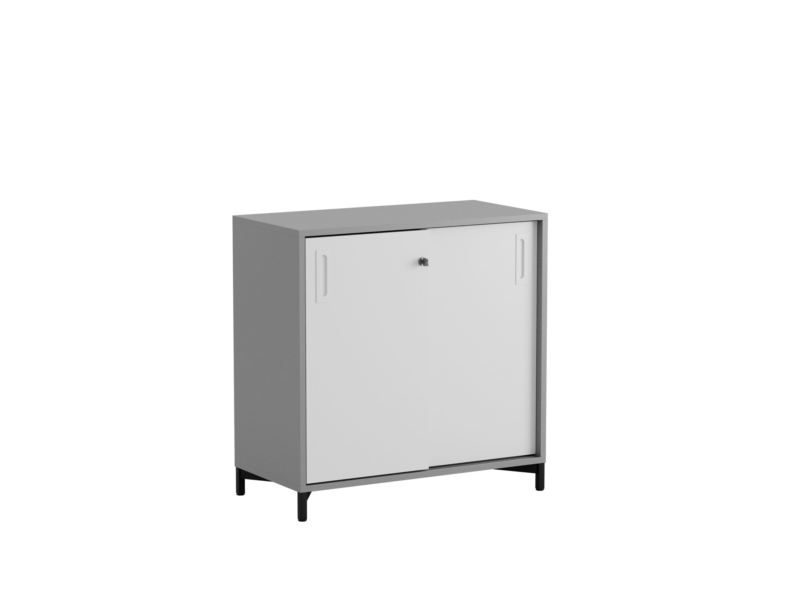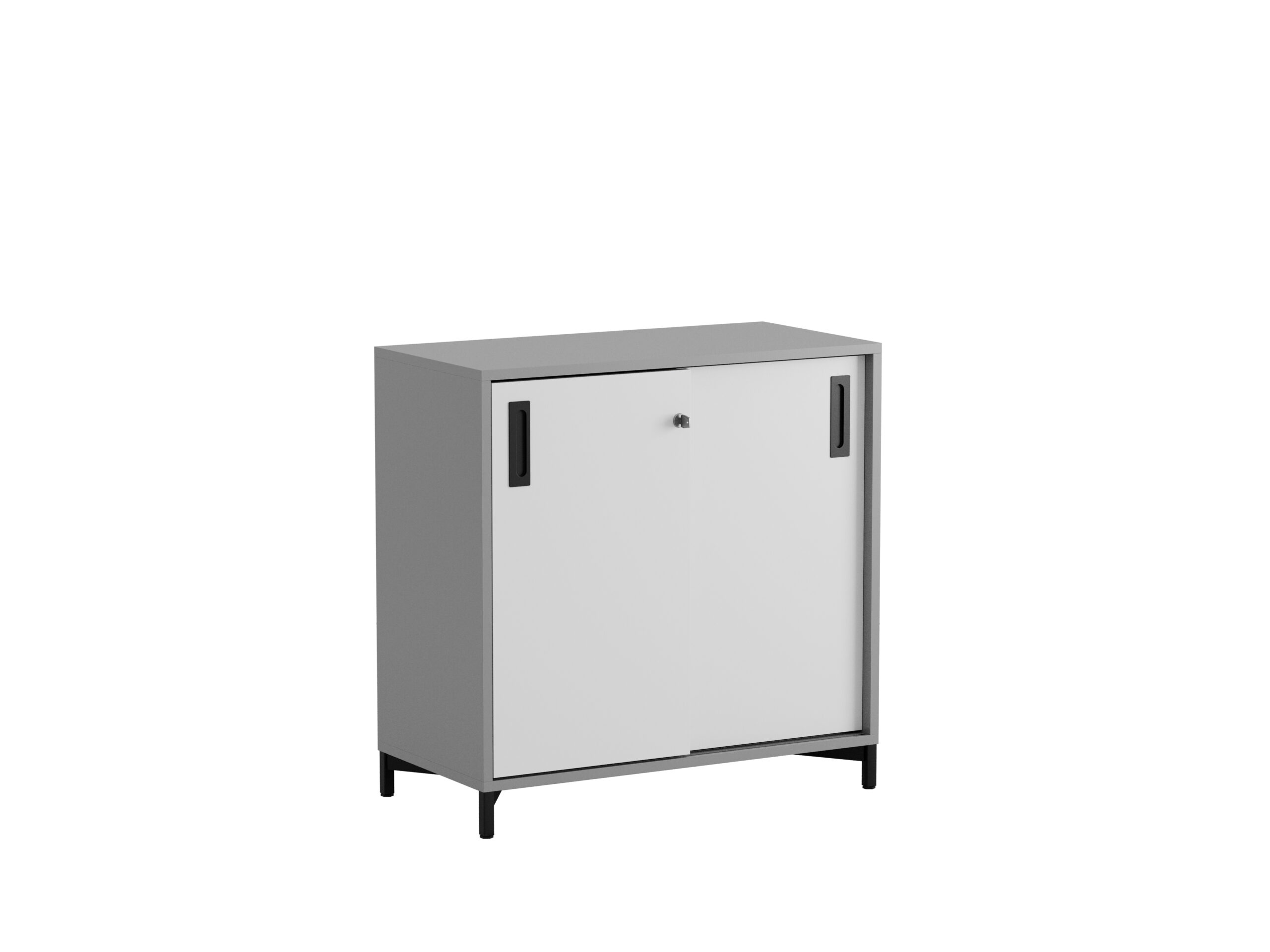 Skjutdörrskåp / dokumentskåp / kontors skåp i grå stomme och skjutdörrar i grå, vit eller ek. Med plastfötter. Mått 80x40x73,5 cm. Småland serien för kunder som gillar nordisk stilren design. Välj mellan handtag i 3 färger. Skåpet rymmer 2 pärmar på höjden. Lås med 2 nycklar ingår.