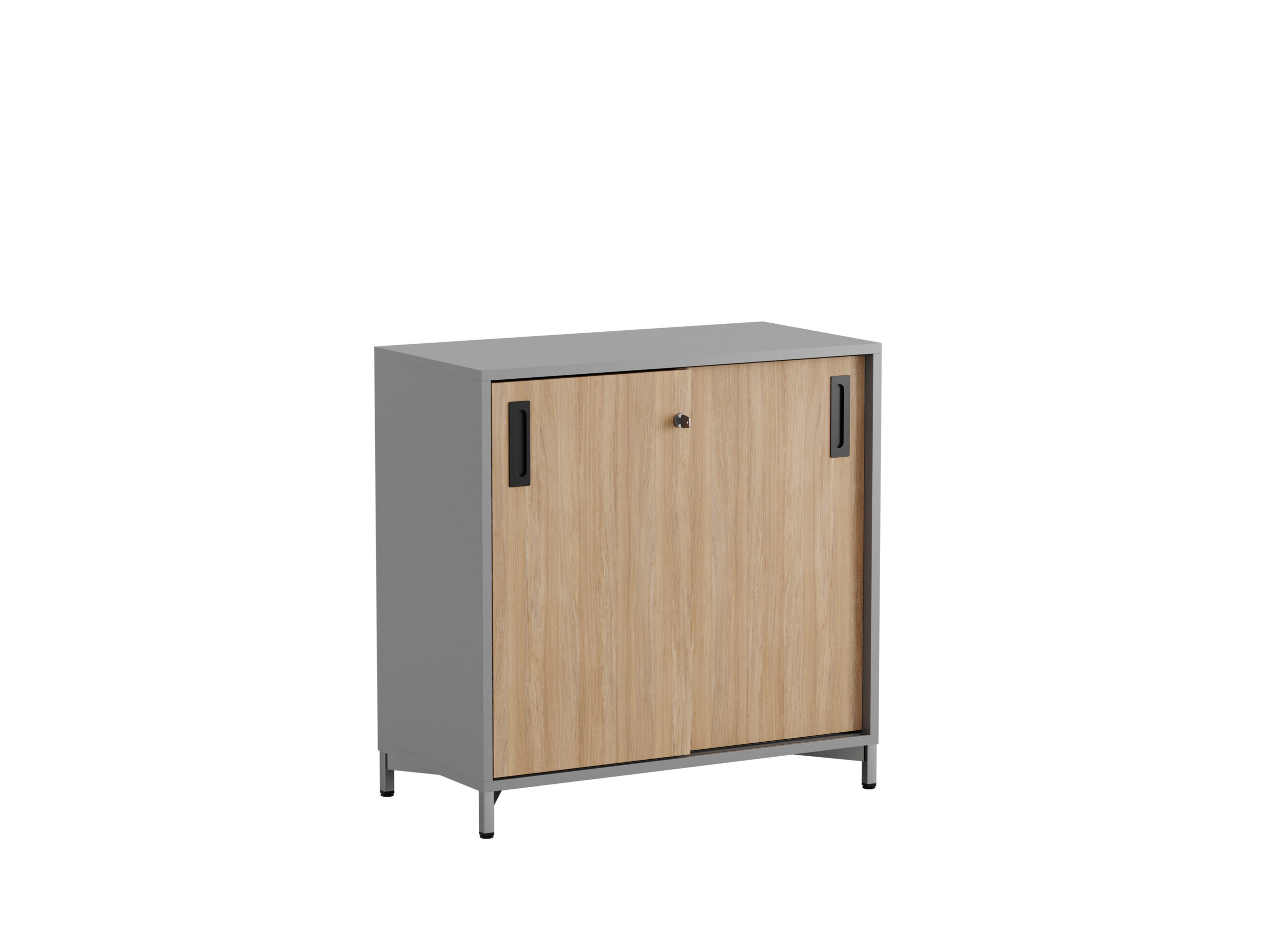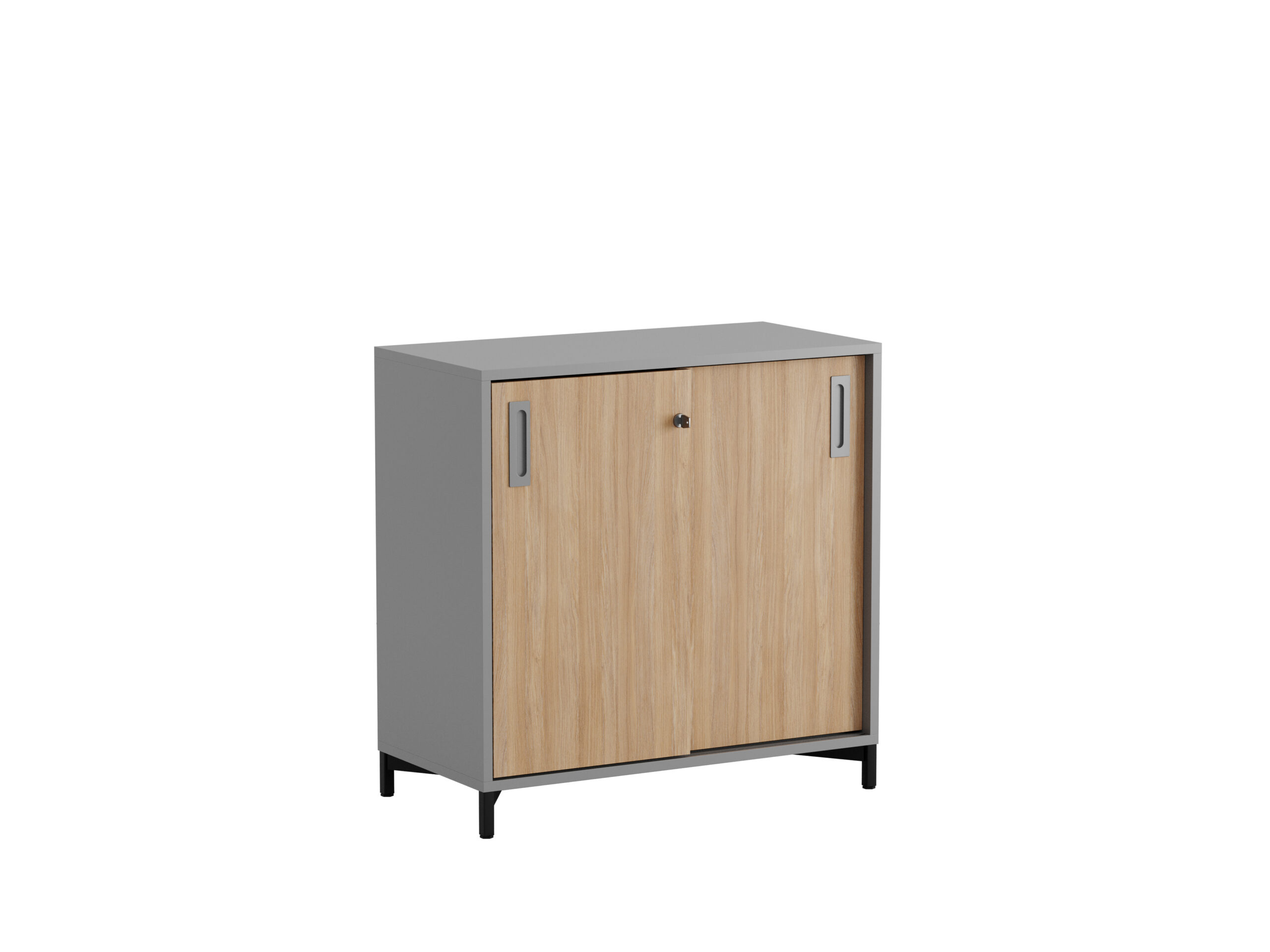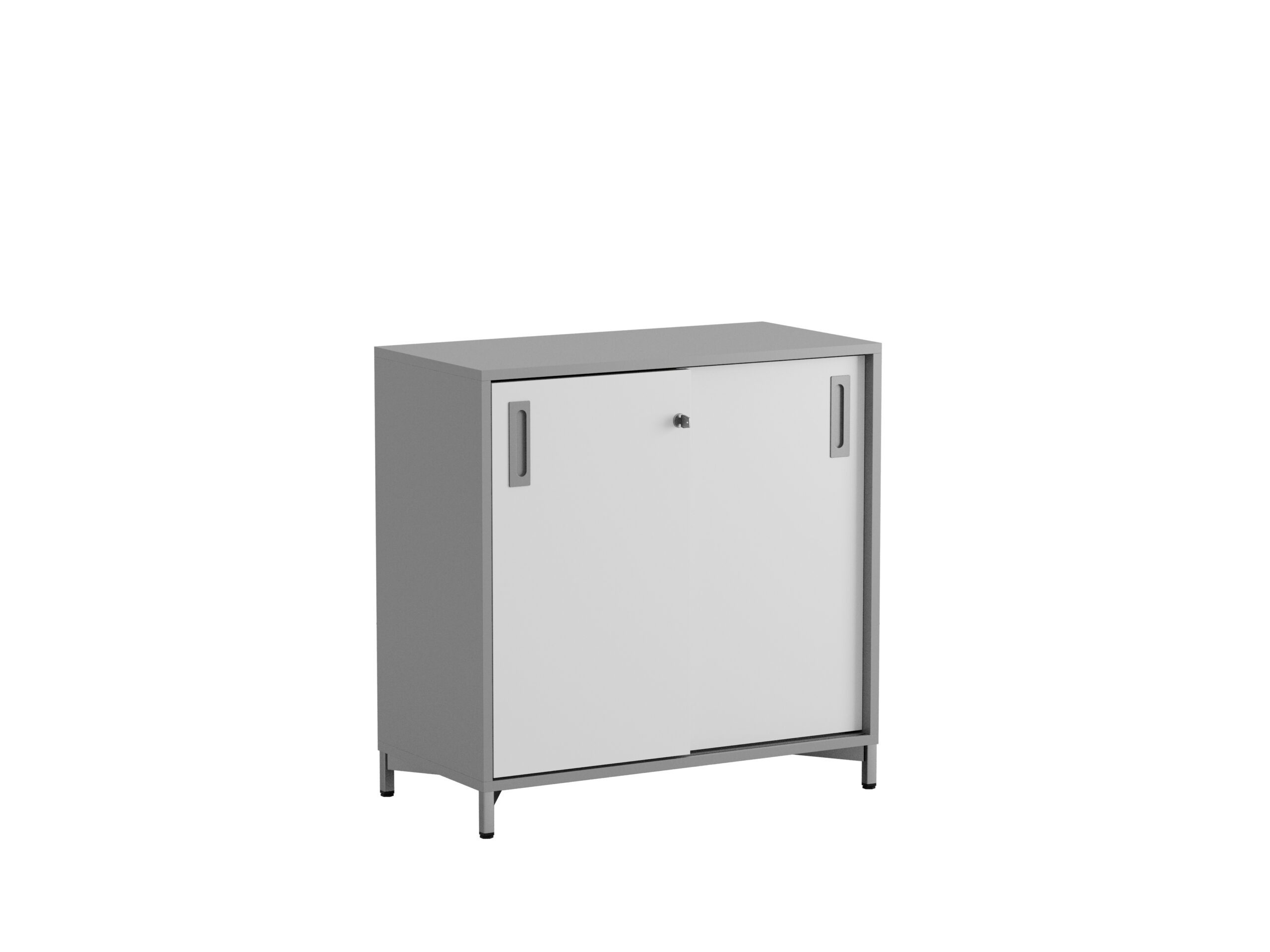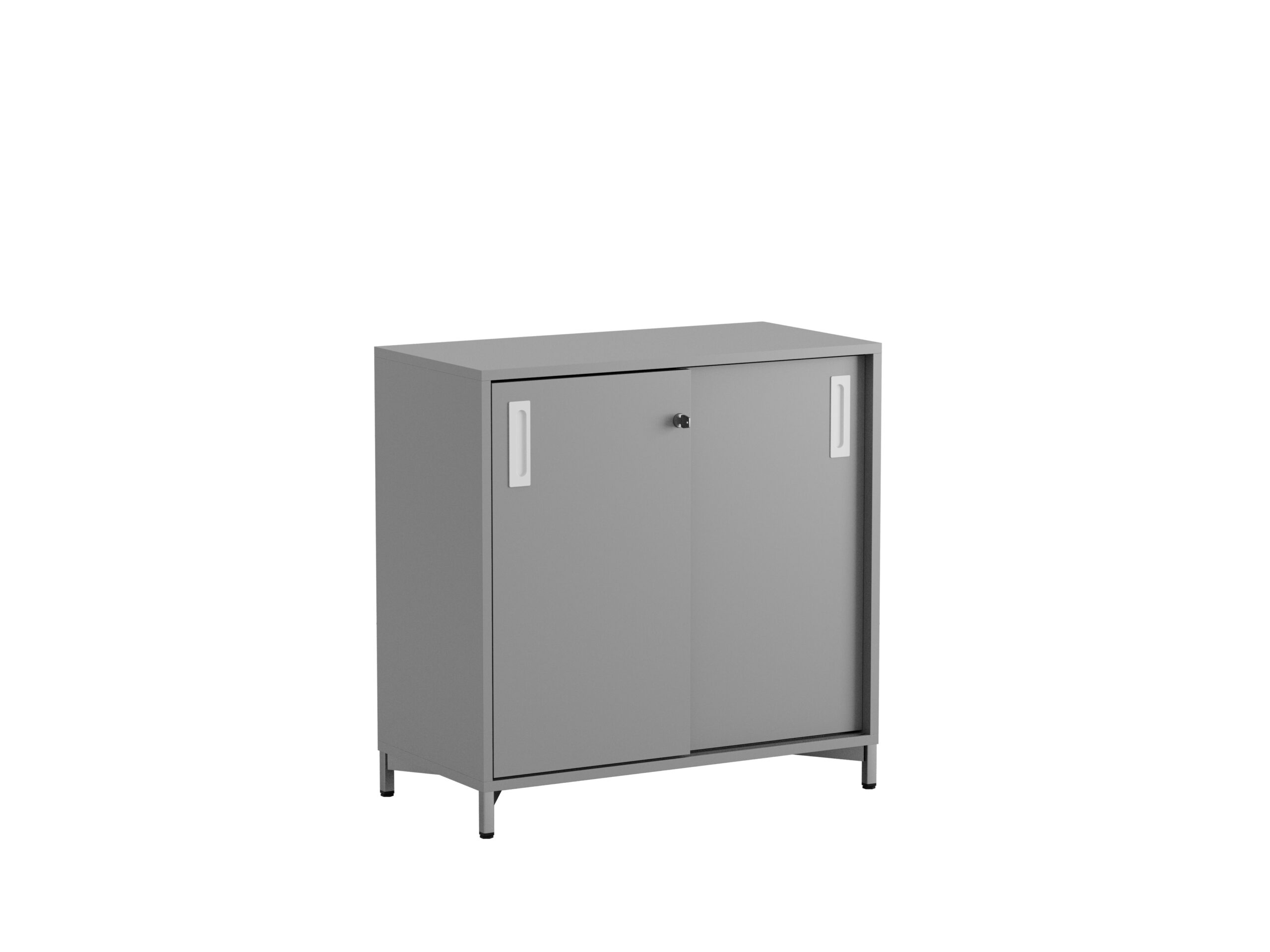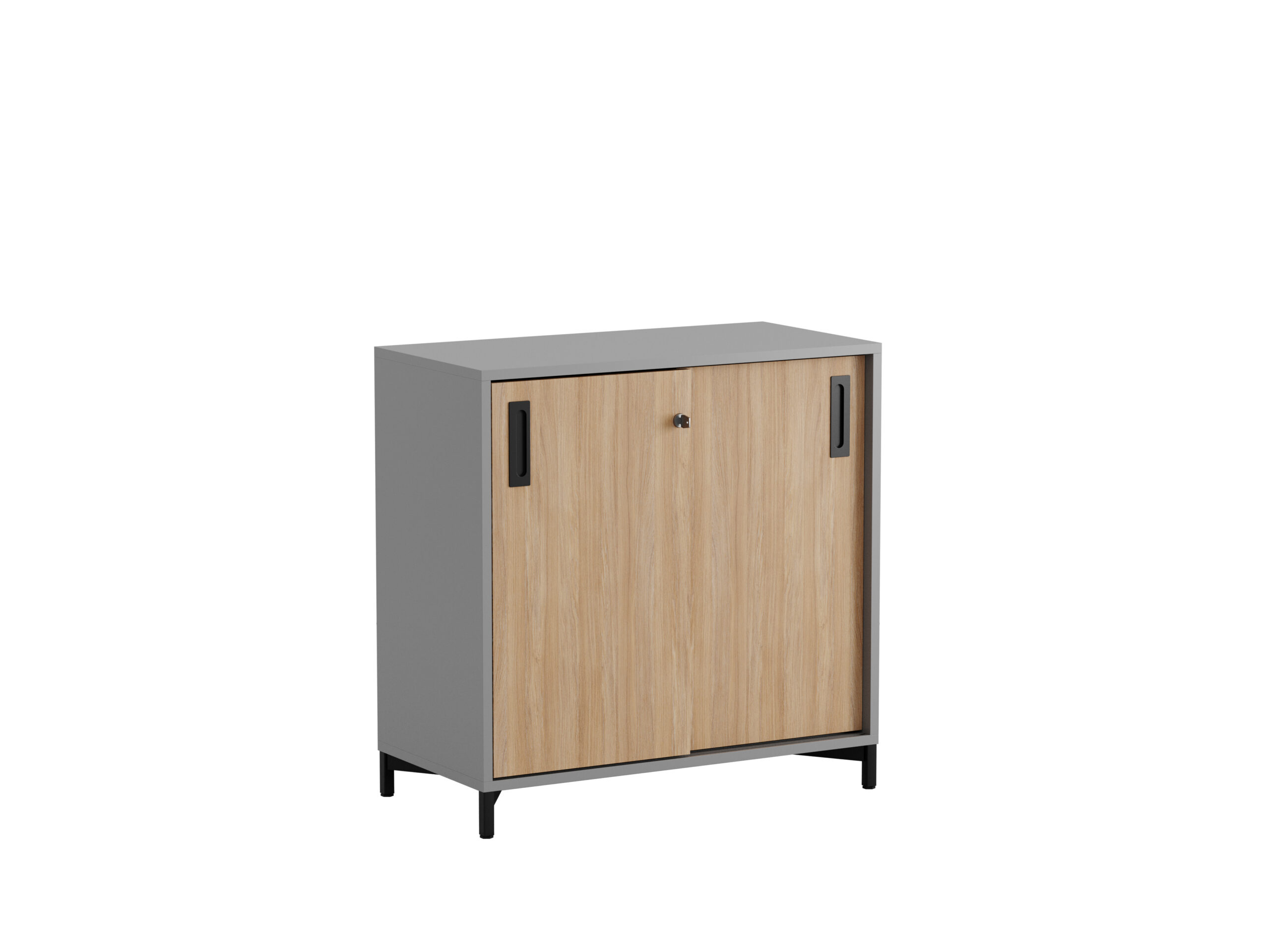 Skjutdörrskåp / dokumentskåp / kontors skåp i grå stomme och skjutdörrar i grå, vit eller ek. Med plastfötter. Mått 80x40x73,5 cm. Småland serien för kunder som gillar nordisk stilren design. Välj mellan handtag i 3 färger. Skåpet rymmer 2 pärmar på höjden. Lås med 2 nycklar ingår.