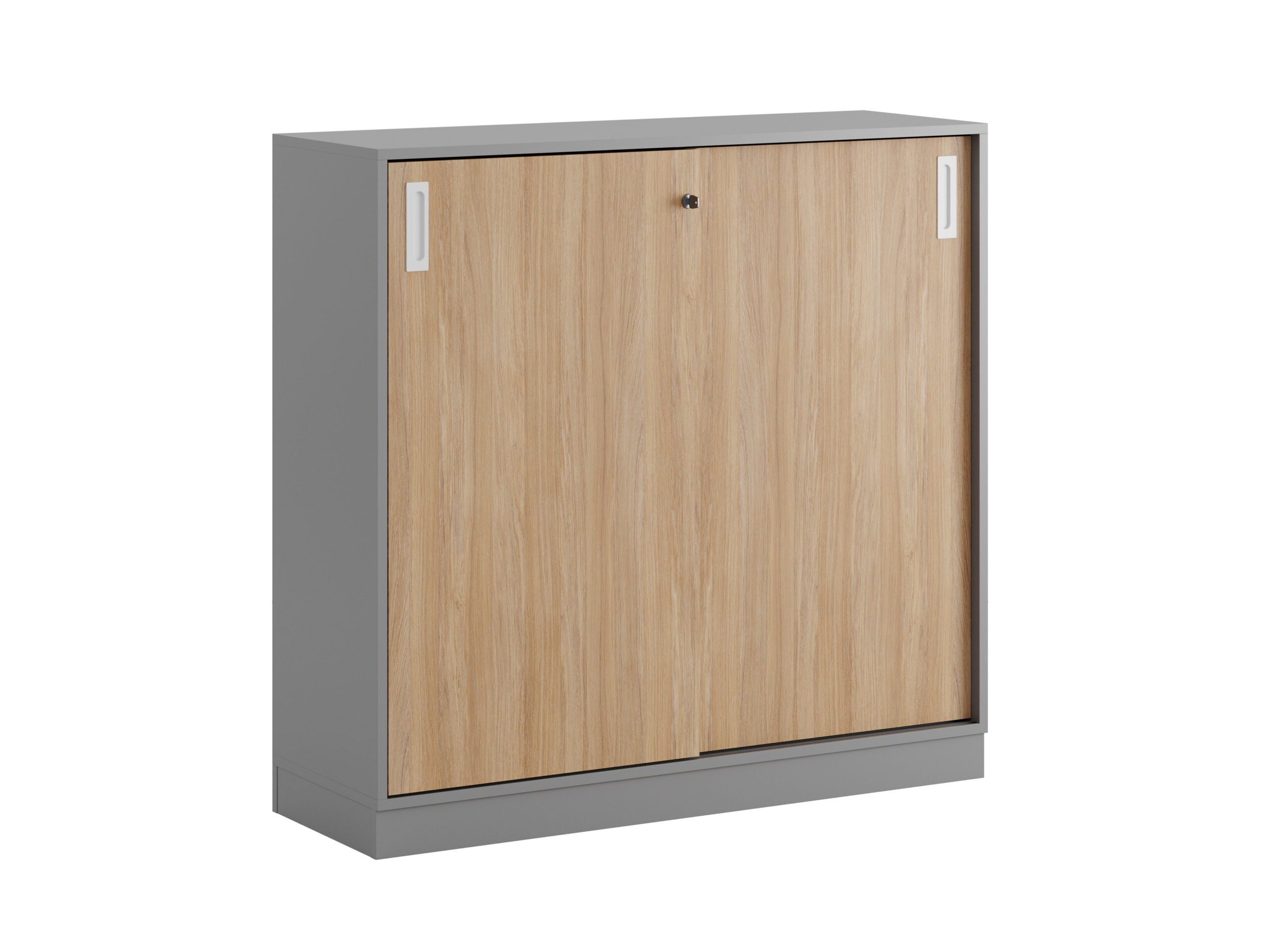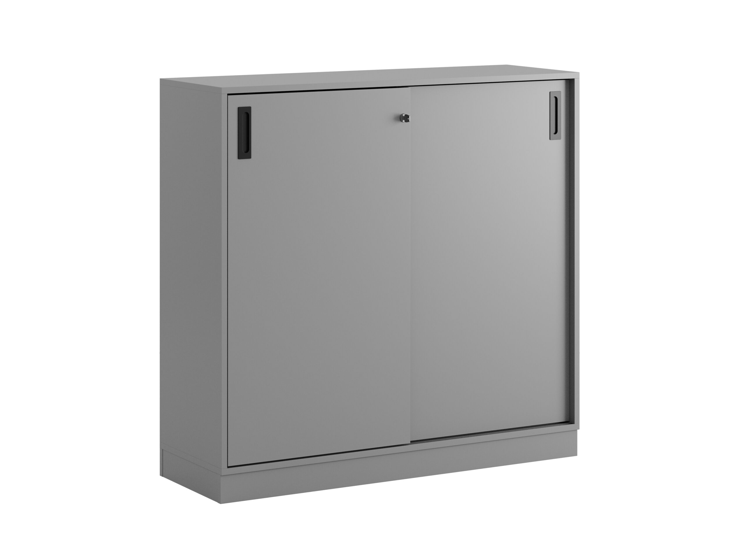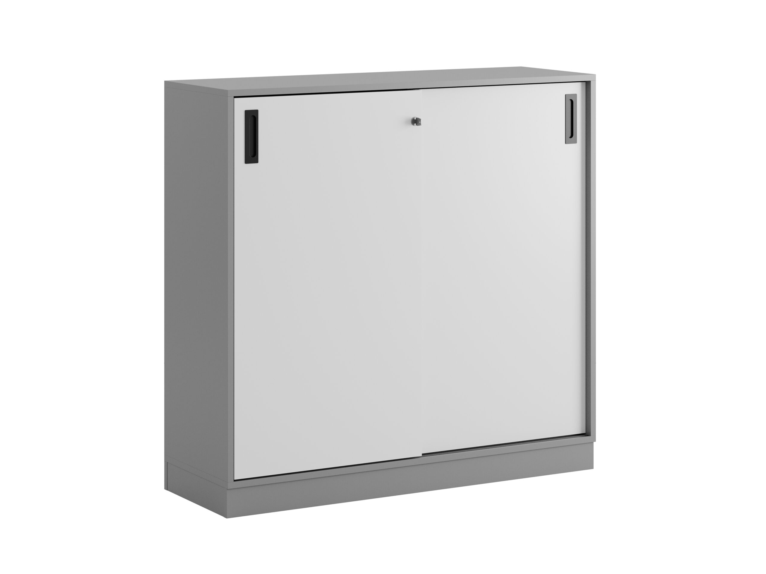 Skjutdörrskåp / dokumentskåp / kontors skåp i grå stomme och skjutdörrar i grå, vit eller ek. Med sockel. Mått 120x40x115,5 cm. Småland serien för kunder som gillar nordisk stilren design. Välj mellan handtag i 3 färger. Skåpet rymmer 3 pärmar på höjden. Lås med 2 nycklar ingår.
