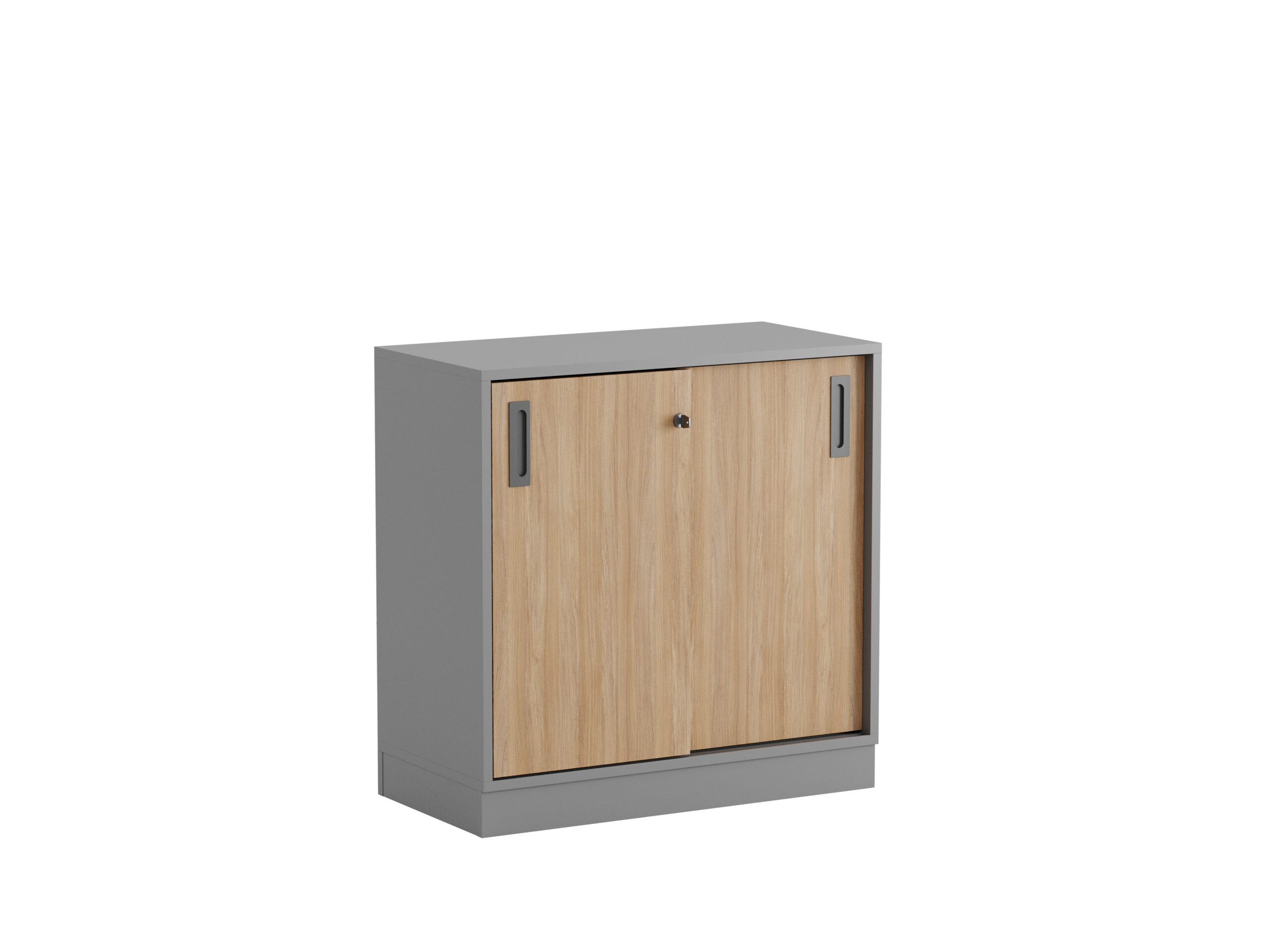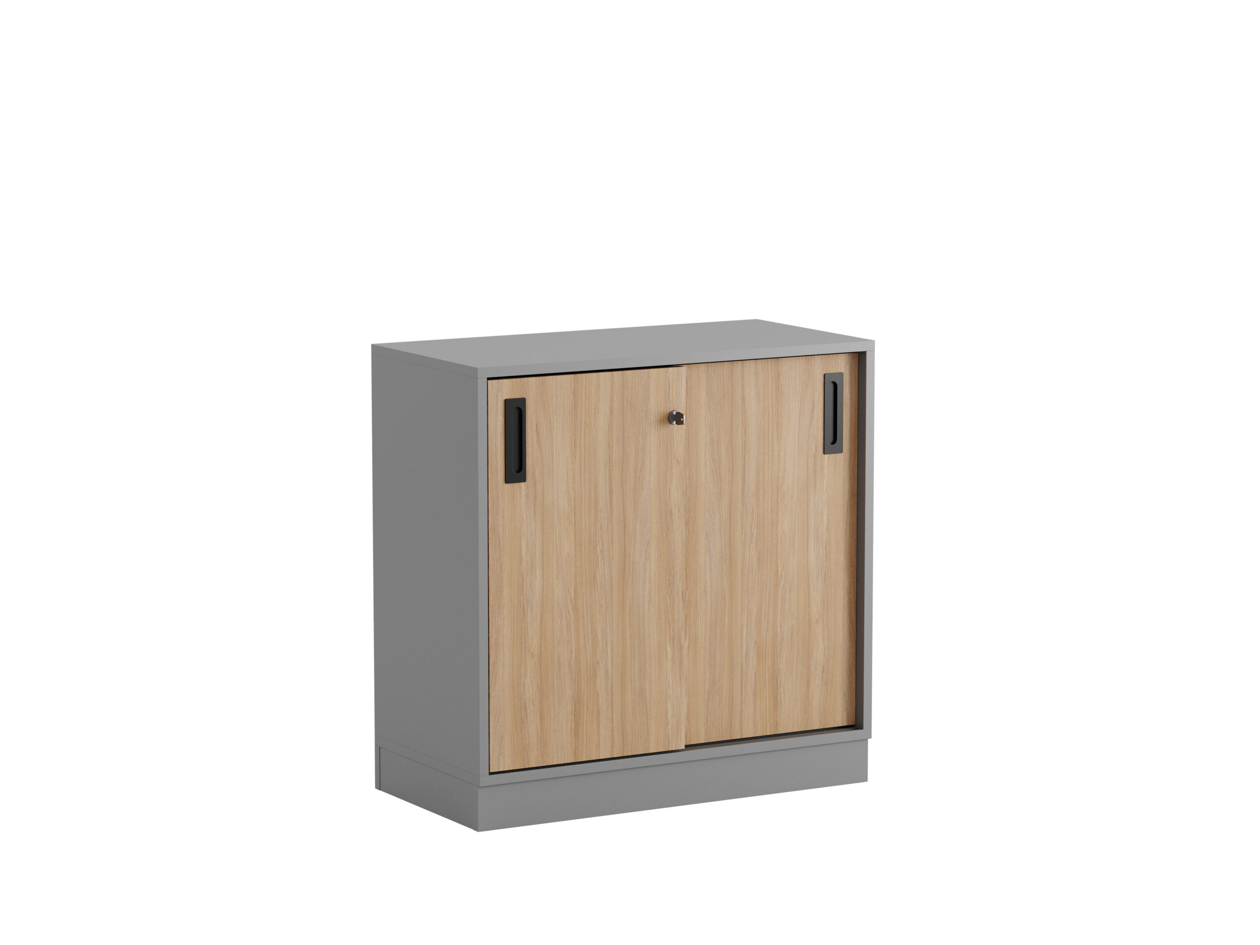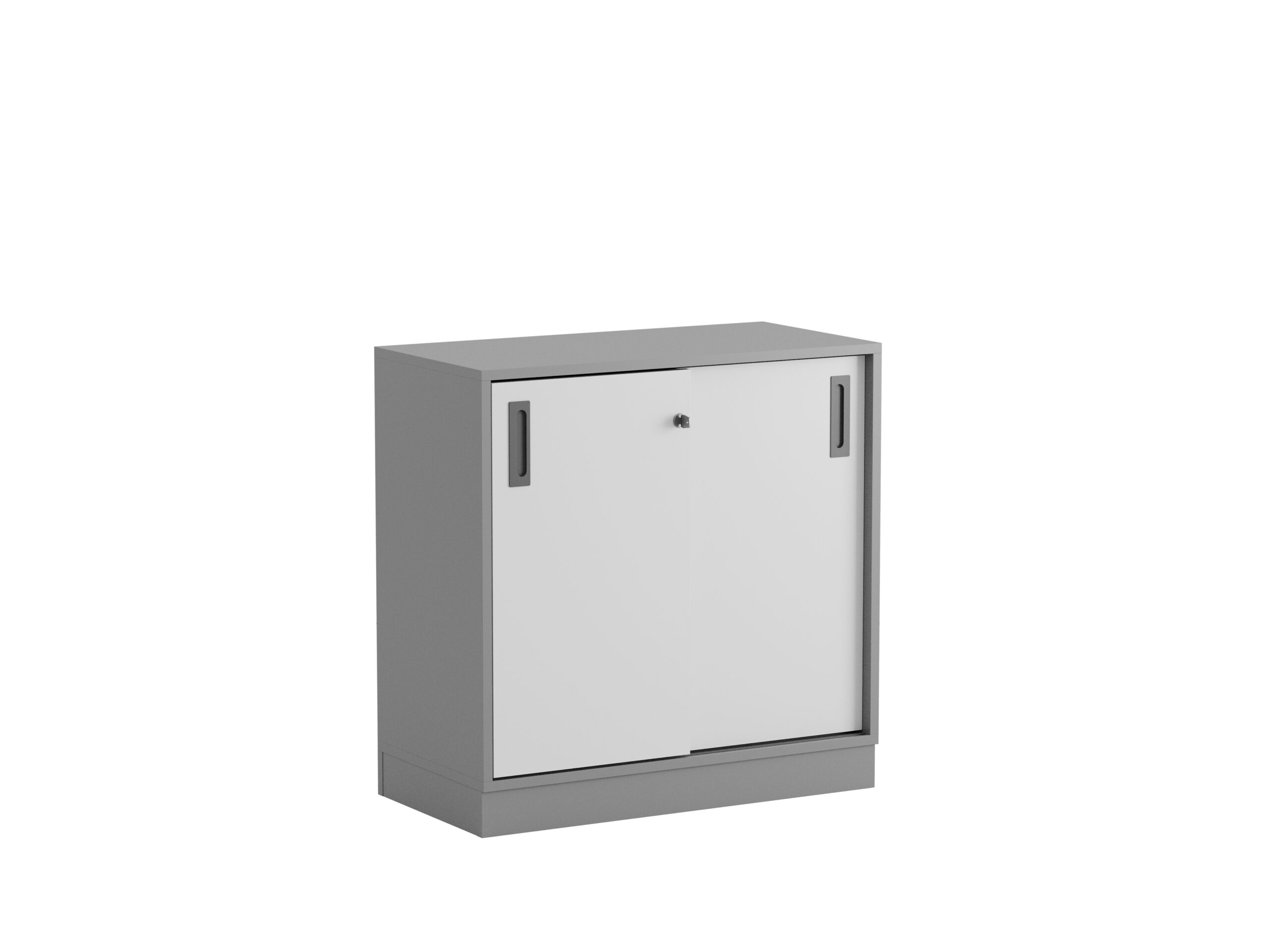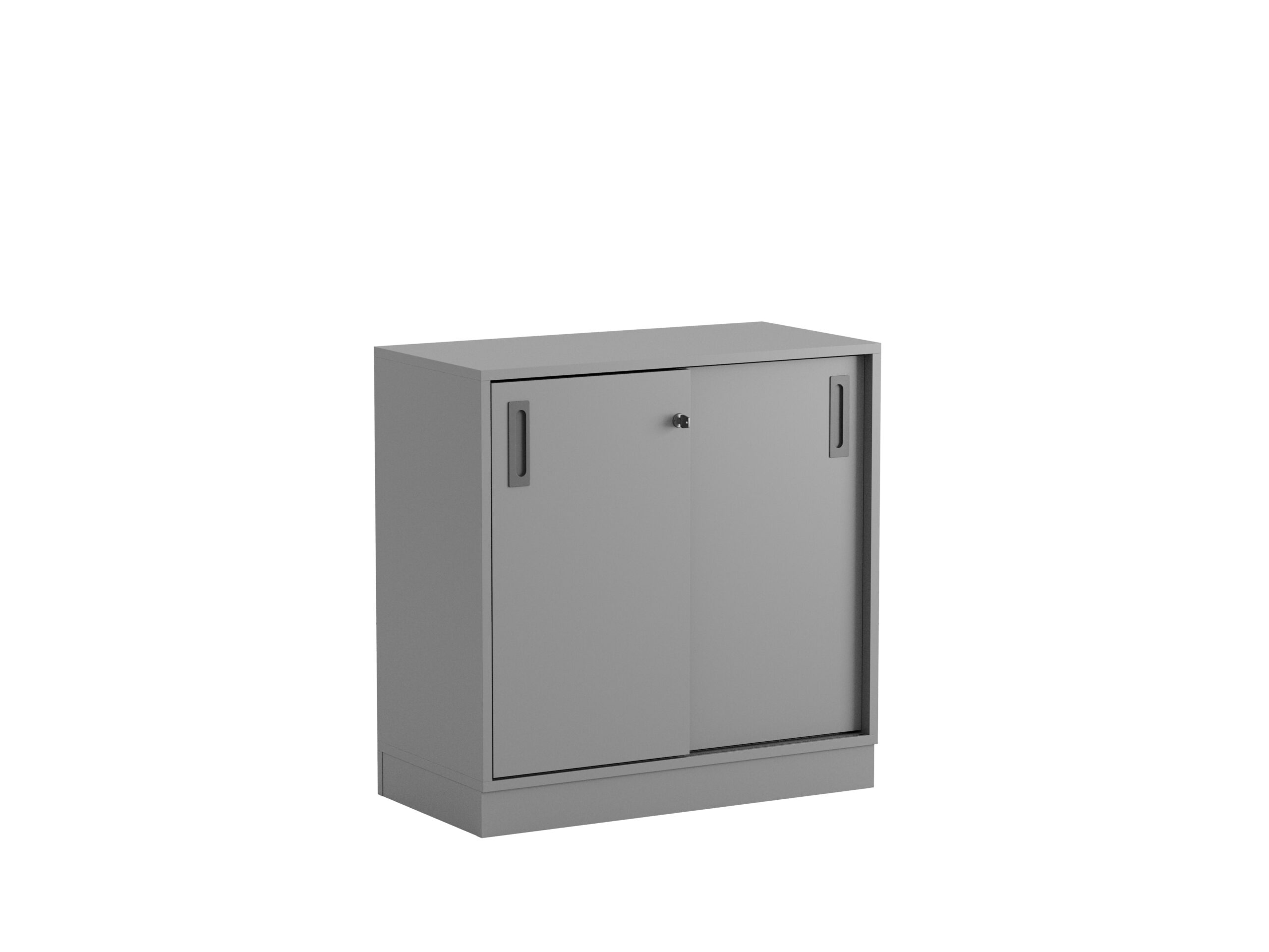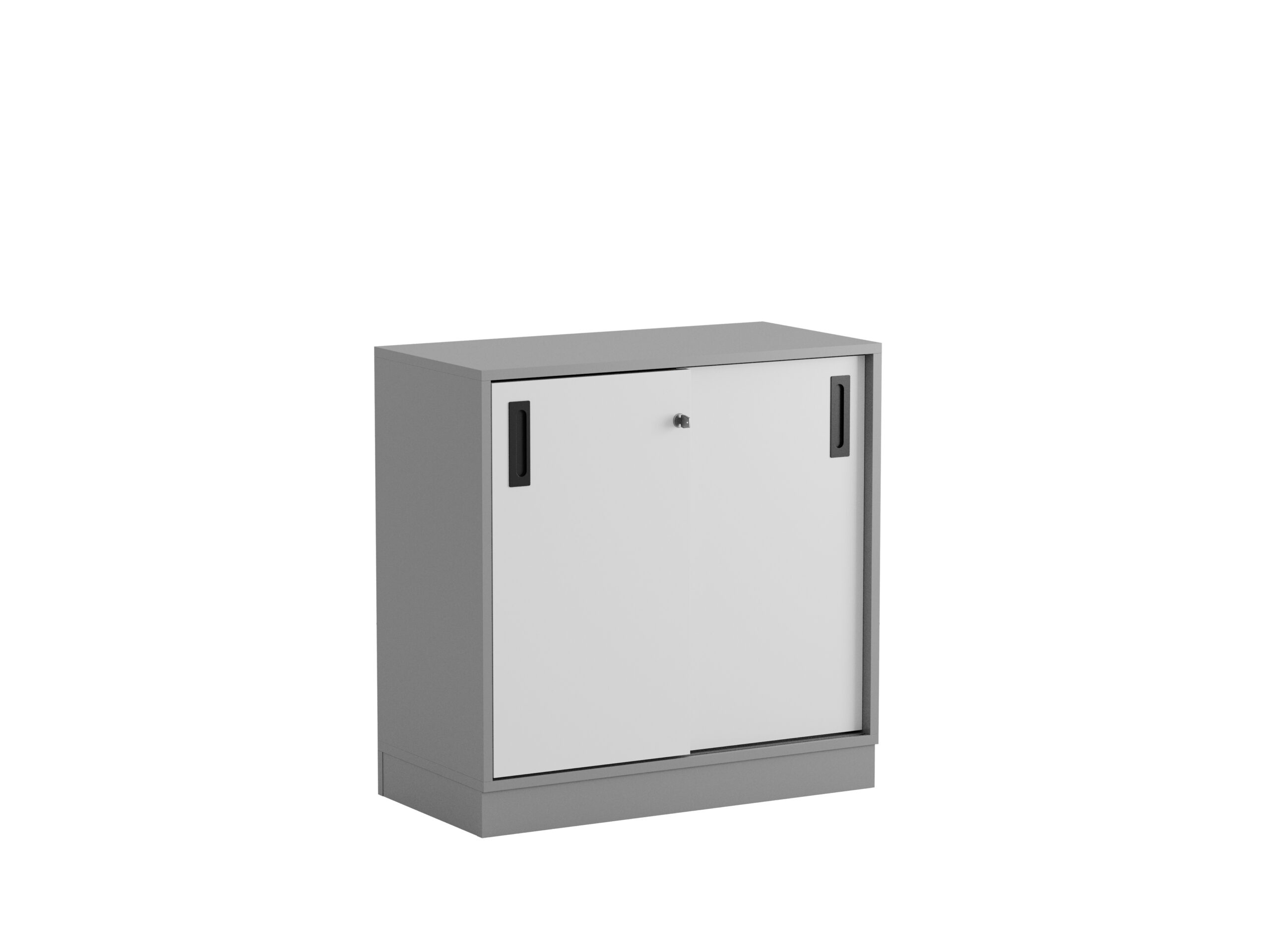 Skjutdörrskåp / dokumentskåp / kontors skåp i grå stomme och skjutdörrar i grå, vit eller ek. Med sockel. Mått 80x40x80 cm. Småland serien för kunder som gillar nordisk stilren design. Välj mellan handtag i 3 färger. Skåpet rymmer 2 pärmar på höjden. Lås med 2 nycklar ingår.