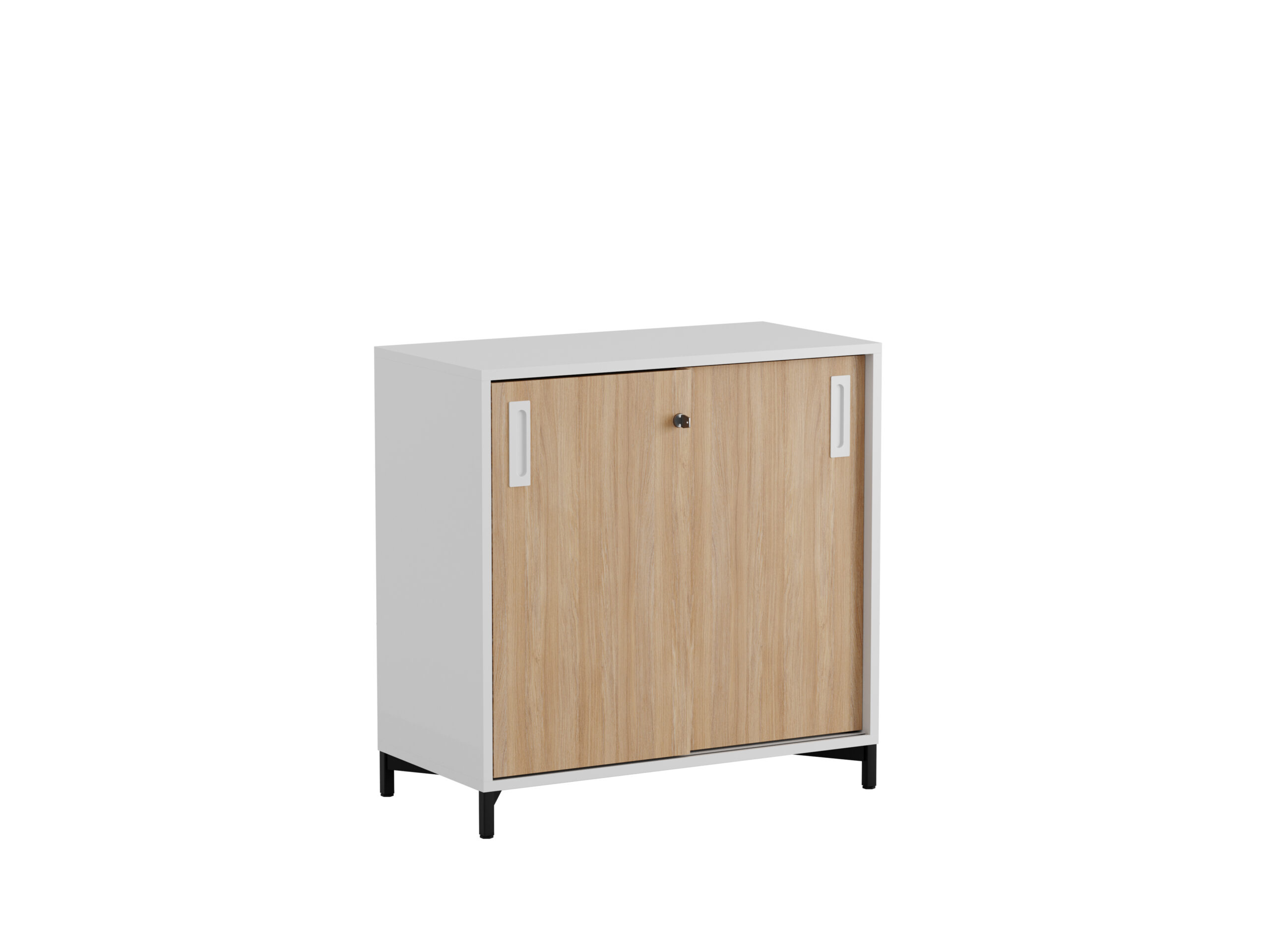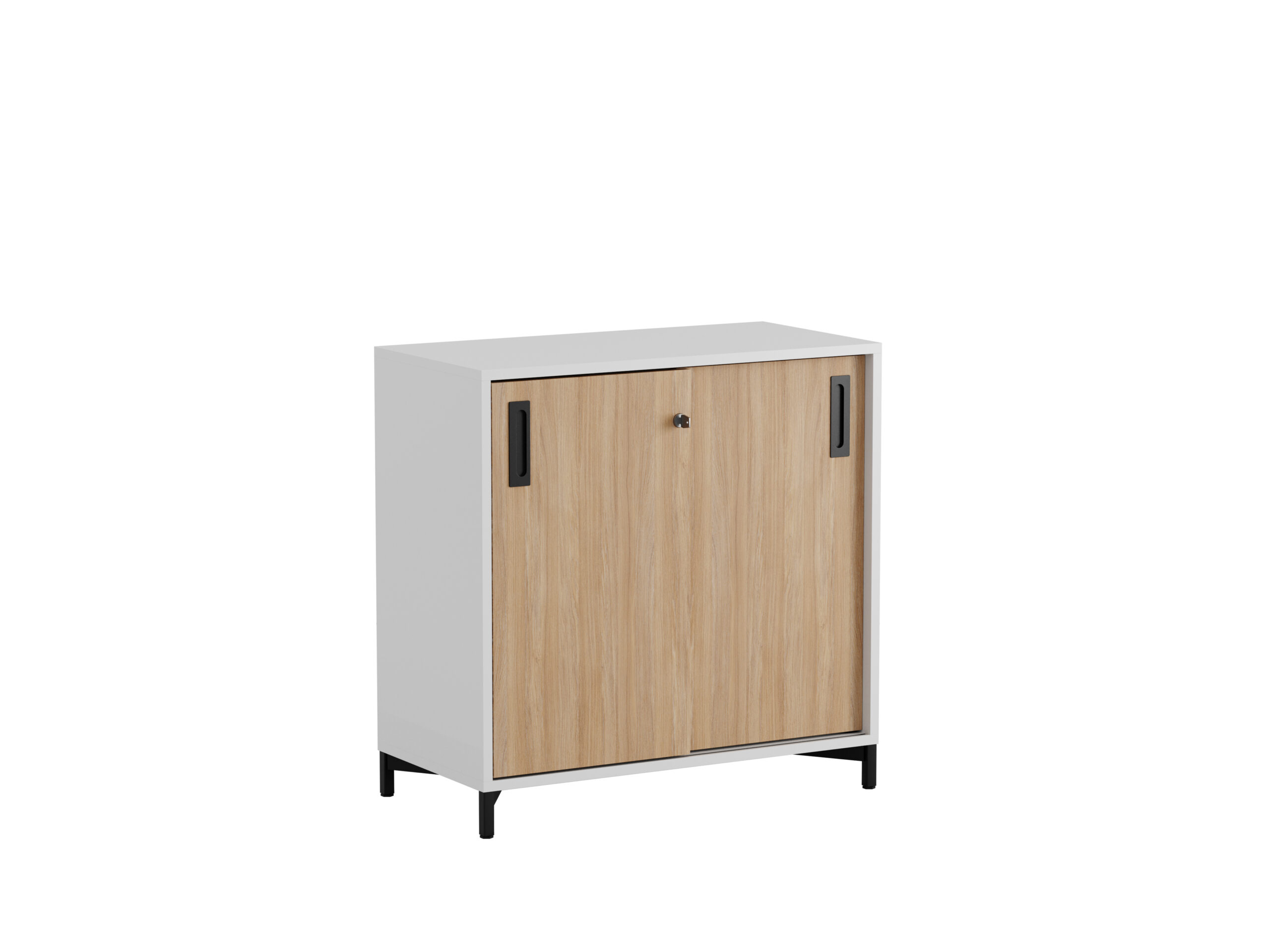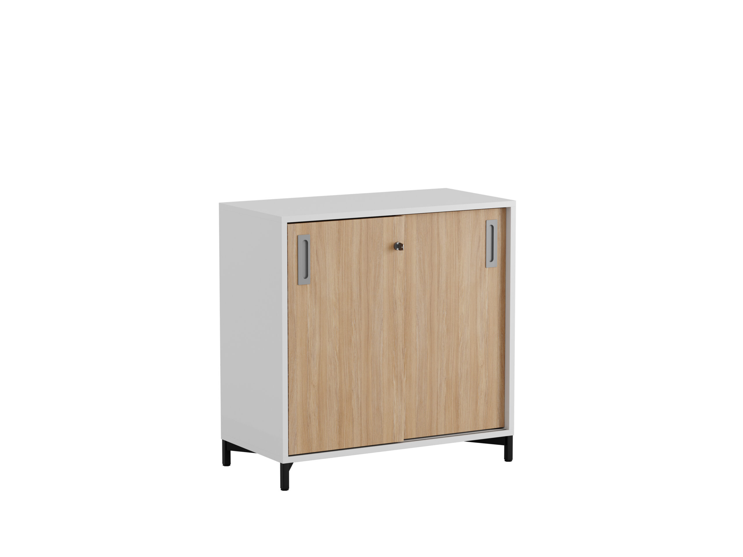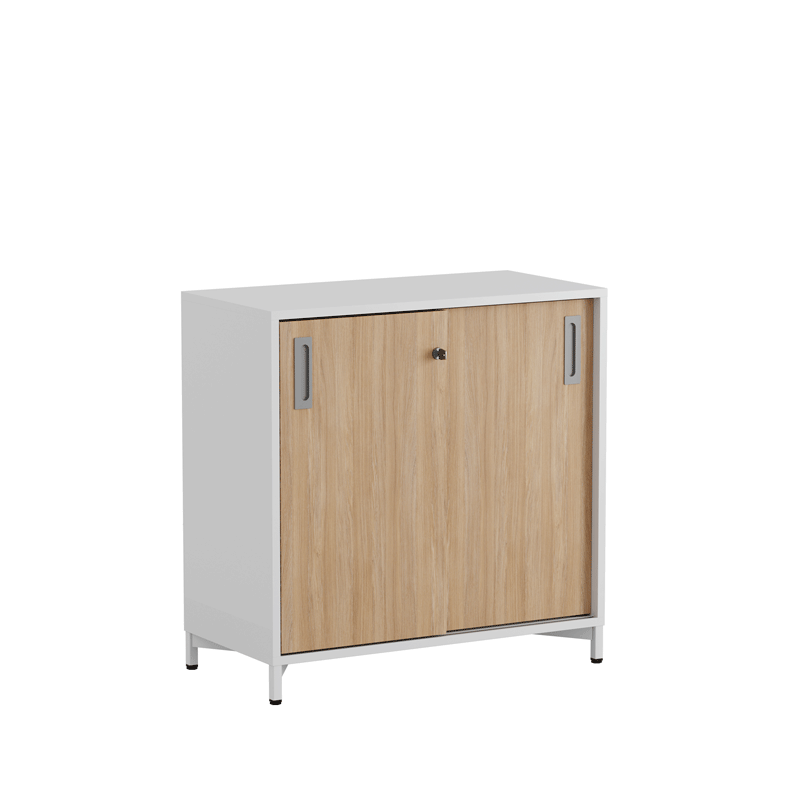 De smidiga skjutdörrarna sparar plats och gör det enkelt att öppna och stänga skåpet i alla kontorsmiljöer.