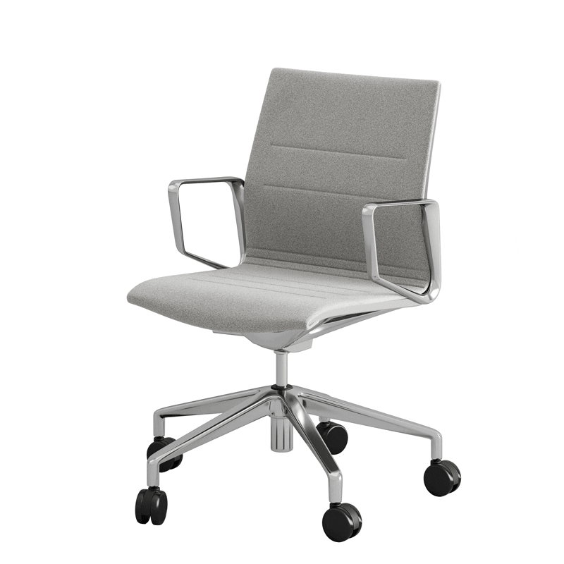 Fasta armstöd i polerad aluminium ger ett stilrent uttryck och stabilt stöd under möten och arbete.