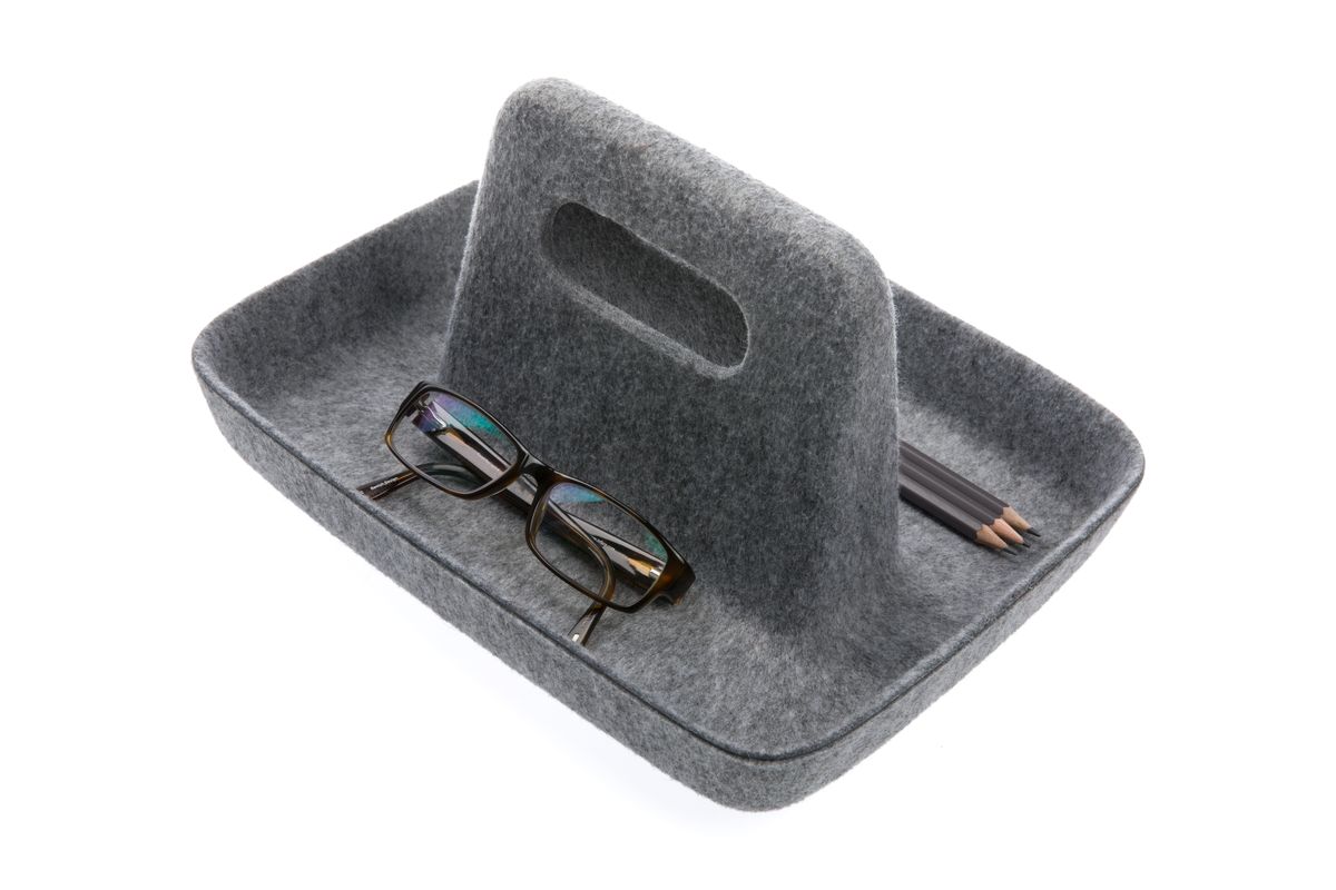 Bär runt dina saker på i det aktivitetsbaserade kontoret på ett tyst och behagligt sätt. TATAMI bordskorg fångar Materialet är av ett återvunna PET flaskor och heter polyester filt. Perfekt att luta surfplattan på och få en extra skärm på skrivbordet eller i konferensrummet. Samtidigt får det plats åtskilliga pennor, små block och andra kontorsartiklar.