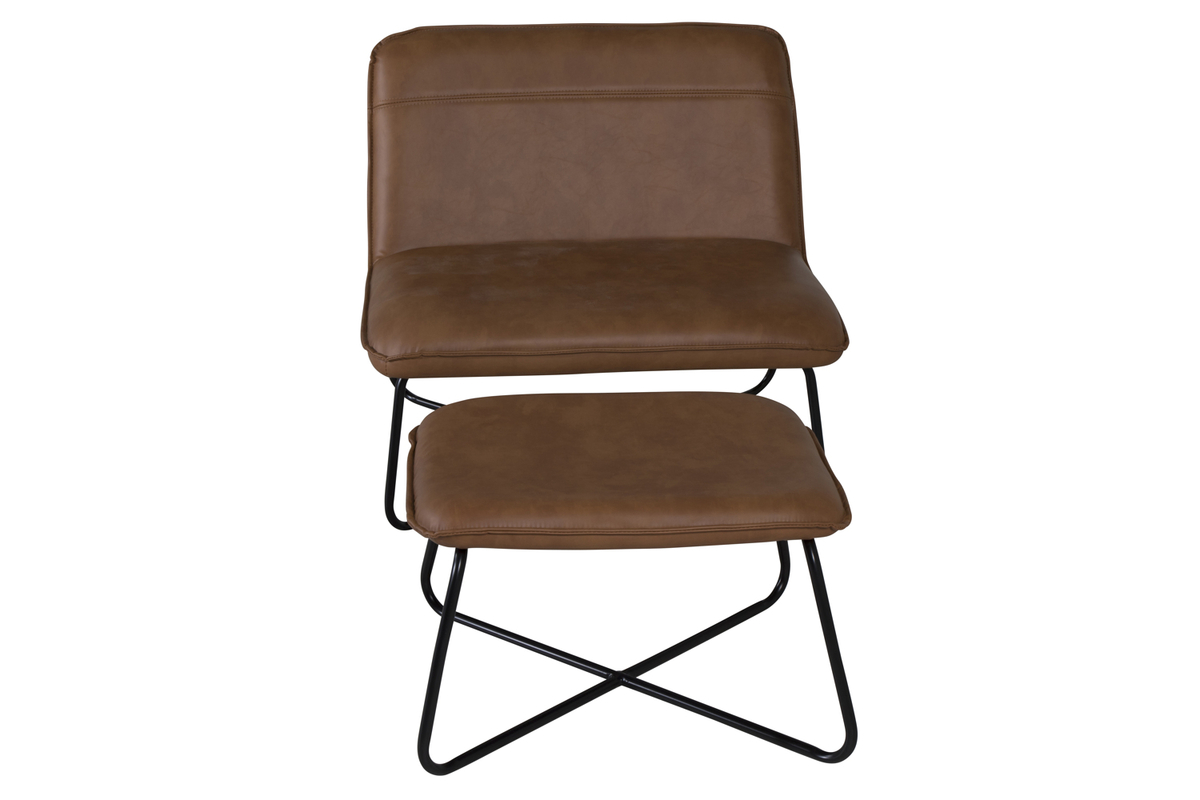 X-Lounge fåtöljen och fotpallen har en tidlös design med traditionell brun PU-klädsel och eleganta svarta ben i modern tappning. Den kombinerar klassisk estetik med modern funktionalitet och blir snabbt en favoritplats i kontoret.