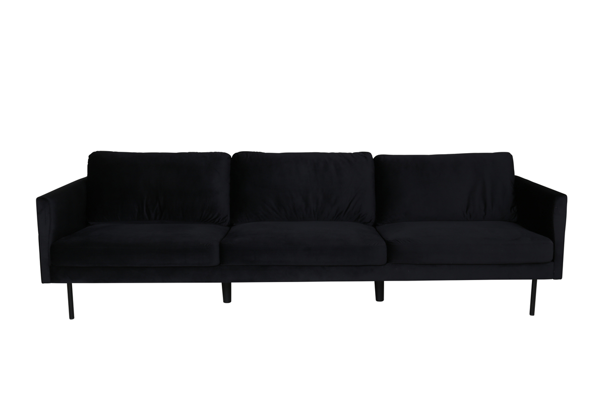 Lyxig, mysig och inbjudande – Zoom 3-sitssoffa i mjuk sammetsklädsel och kaxig svart kulör skapar ett imponerande blickfång i kontorsmiljön. Denna stilrena soffa förenar skandinaviskt inspirerade raka former med modern design för att erbjuda både estetik och komfort.