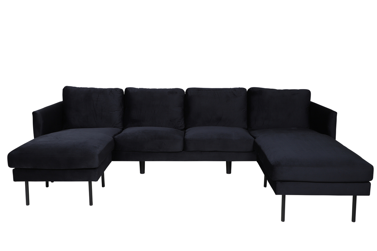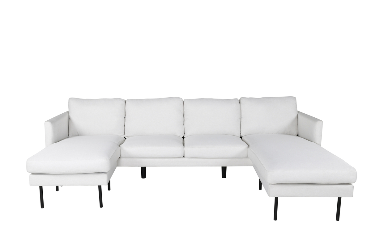 Zoom-soffan är designad med rak nordisk form och har en iögonfallande design med två divaner, vilket ger ett generöst sittutrymme för både informella möten och avkoppling. De smala benen i svart metall bidrar till ett modernt och luftigt intryck, samtidigt som de underlättar städning.